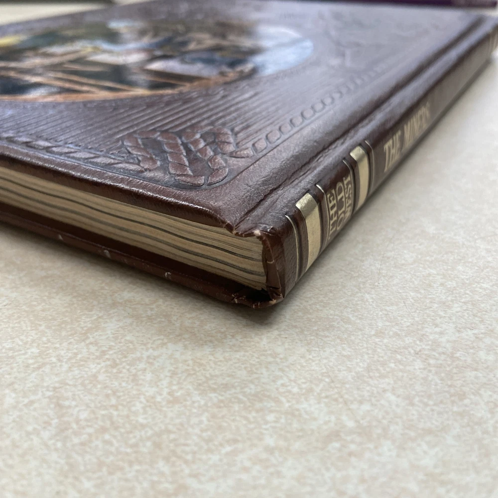 In great condition for its age, the faux leather on the covers of “The Miners” is nearly pristine aside from some slight shelf wear. A relatively extensive book on early US mining history, complete with b&w photos and all.