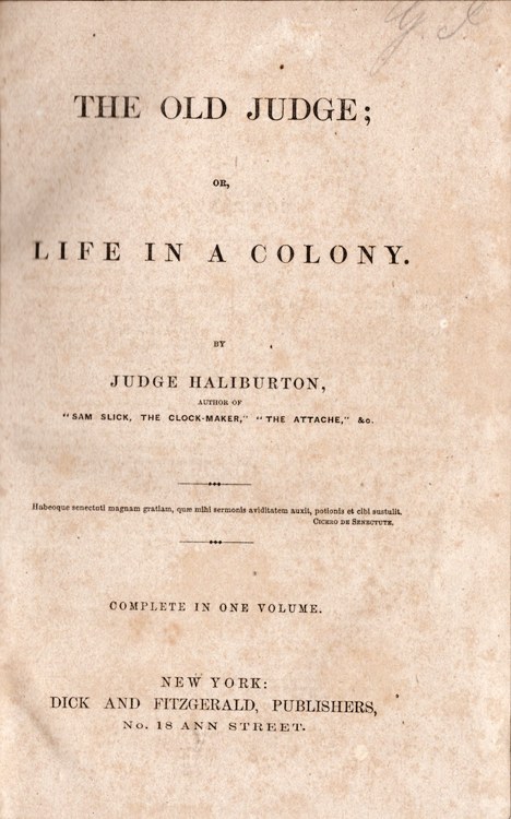 Offered here is an old antique 19th century book, The Old Judge; Or, Life In A Colony, Complete in One Volume, by Judge (Thomas Chandler) Haliburton [died in 1865], Published by Dick and Fitzgerald, NY, 239 pp. ca. 1860 [the dates of the books listed on the one page of Publisher's Advertisements at the back of the book, approximately 9" X 6 1/8" X 3/4". Red leather 1/4 Bound over boards with gilr titles and decorative bands on the spine, with spotted paper over boards on the remainder of the covers . Lime green endpapers with previous owner and book #, two letters penciled at the top of the title page, thin pulp paper with small print, lightly oxidized throughout. Shipped in plastic, boxed and with delivery confirmation. Please go to my m e button for additional information on collectibles we are offering! PLEASE leave positive feedback - I always do. Please be sure to check our store, Myers Collectibles, where we have thousands of items listed. Each week we list Over 100 new Antiques & Collectibles for sale! Always some superb items! You might want to keep us as a "favorite seller" and check back often on our offerings - you'll always find something special. We do discount shipping costs for multiple purchases. Shipping Procedures I pride myself on quick shipping. I ship next business day after payment is received. Please note Buyers from outside of the United States are responsible for any and all duties, tariffs or other fees that YOUR country may impose. Once a package is in the Postal Service hands, I lose control over it. Generally, for US shipments you can expect delivery within 3 or 4 business days (or 3-9 for media rate). For non-US shipments, once the package leaves the US, even the USPS loses control over it. I cannot predict transit times for these packages. They quite often are held up in customs in the receiving country. Please be patient.