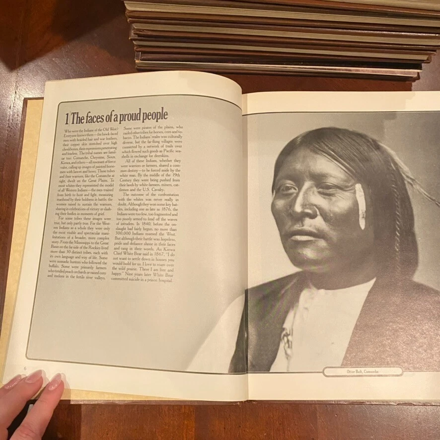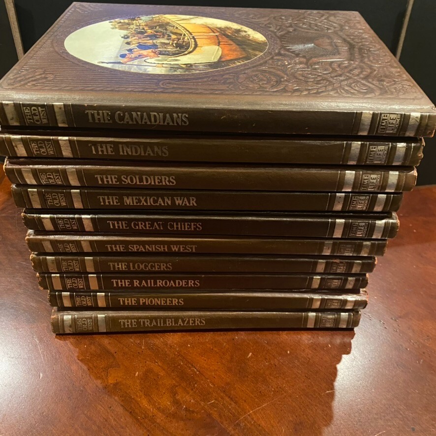 Explore the rich tapestry of American heritage with "The Old West" series, a comprehensive collection of 26 volumes by Time Life Books. Each hardcover volume delves into the fascinating narratives and little-known stories that shaped the Western frontier, offering a deep dive into the past with meticulous research and captivating storytelling. Perfect for history enthusiasts and collectors alike, this extensive set is a journey through the rugged landscapes and intricate cultures of the Old West. With its robust leather binding, this 70s-era set is not only a treasure trove of historical insight but also a testament to the era's craftsmanship. Whether for display or perusal, it's a monumental collection that brings the spirit of the West to your library. Volumes in this set: The Indians The Soldiers The Mexican War The Great Chiefs The Canadians The Spanish West The Loggers The Railroaders The Pioneers The Trailblazers