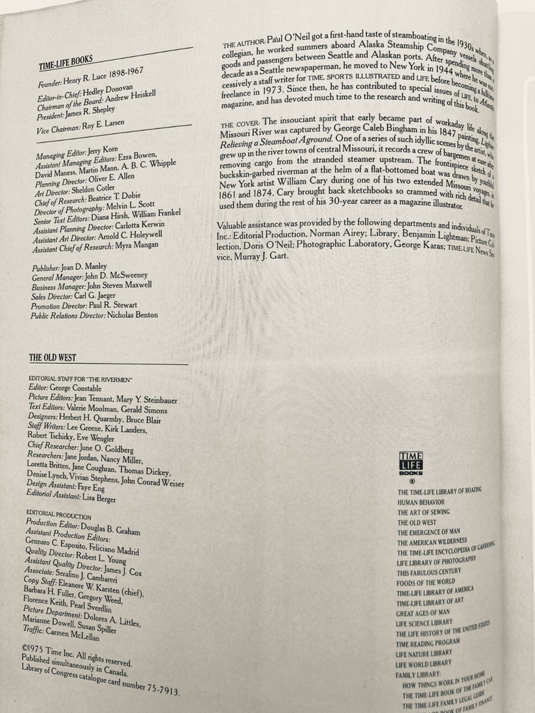 Explore the rugged and wild terrain of the Old West with The Rivermen, a vintage picture book by Paul O'Neil. This hardcover book features stunning illustrations and detailed narratives that recount the adventures of the brave men who navigated the waterways of the American frontier. With 240 pages of captivating stories and historical accounts, readers can immerse themselves in the lives of these intrepid explorers. Learn about the challenges and triumphs of the rivermen as they braved treacherous rapids, unpredictable weather, and dangerous wildlife. Discover the fascinating history of the Old West through the eyes of these fearless adventurers. This Time Life book is a must-have for anyone interested in American history, and a perfect addition to any vintage book collection. The Old West is a series of books about the history of the AMERICAN OLD WEST era, published by TIME LIFE BOOKS from 1973 through 1980. Each book focused on a different topic specific for the era, such as COWBOYS, AMERICAN INDIANS and GUNFIGHTERS. Each volume in the series is 240 pages long, featuring many contemporary pictures and illustrations. They are bound in a padded imitation leather hardcover binding with the series name, title of the book, and publisher imprinted in gold on the spine of the book. The front cover of the book has a glued-on oval shaped picture. Beneath the picture embossed in the faux leather is a set of cattle horns with a rising sun depicted between the horns. The outline of the cover is embossed with a rustic rope. The back cover is blank. The series was issued without a dust jacket. There are 27 volumes in the series, of which volume 27, the "Master Index", was executed as a stapled 65-page soft cover release, not featuring any illustrations. ORDER BY 2PM CENTRAL TIME - SHIPS SAME DAY KILLEBREWSUN