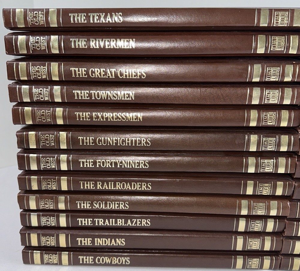 The Old West Time Life Books Choose Your Title Brown Leatherbound The Frontiersman was bound upside down & backwards The Gunfighters comes with a poster - See photos Lightly used condition - Wear from age and storage - Spines are intact - Pages are in good condition writing on first page on all books - See photos Feel free to reach out with any questions