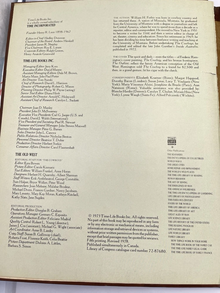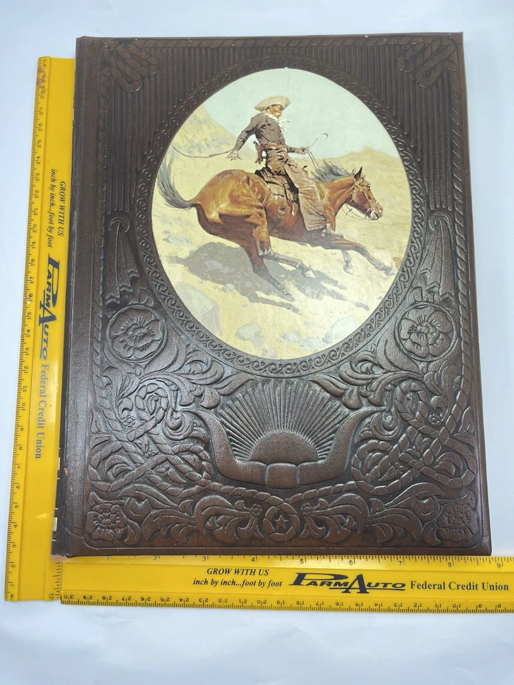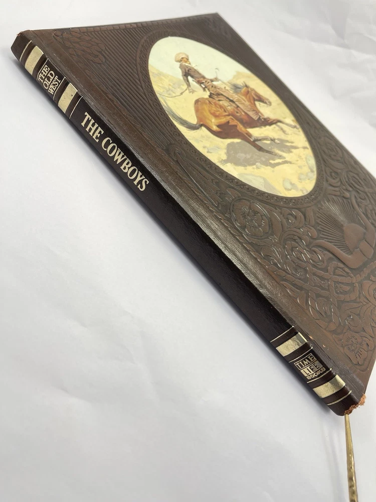 The Old West Time Life Books the Cowboys 1978 Brown Faux Leather Collection Ed Cover pulling from book Needs repair some rips Poorly Stored has slight odor and has some wear on leather please view all...