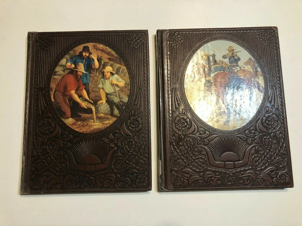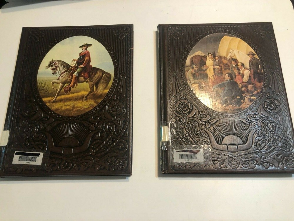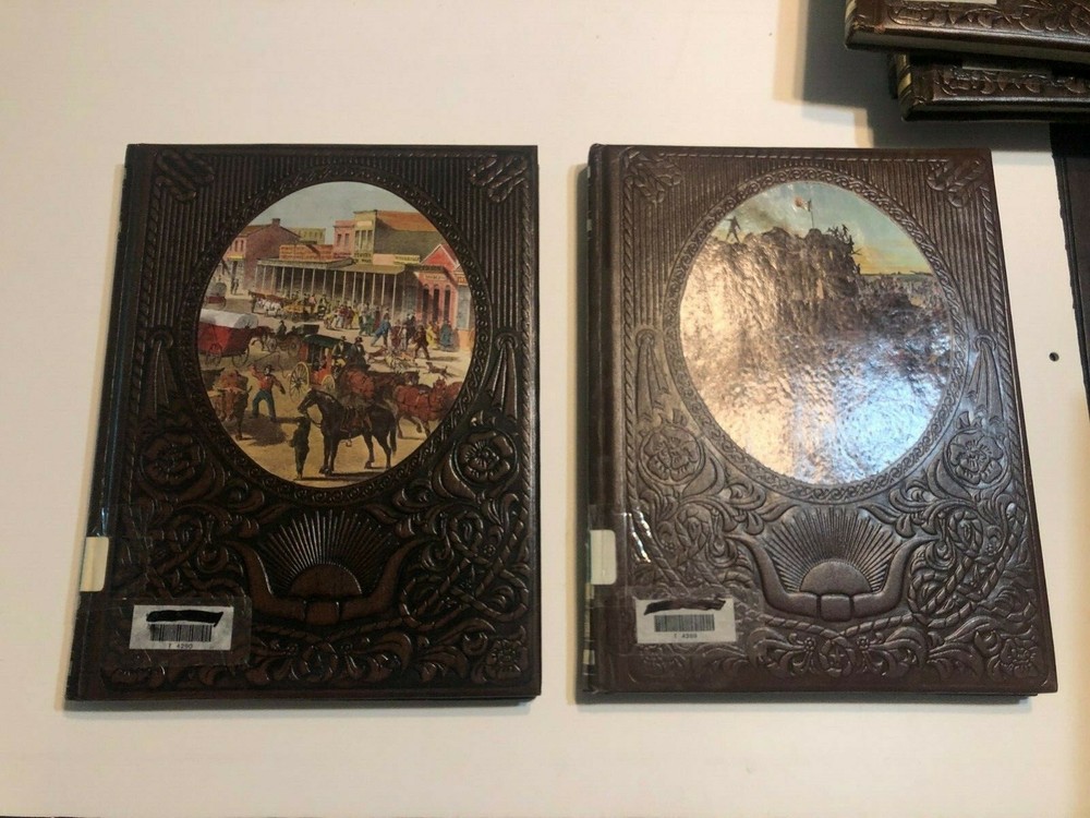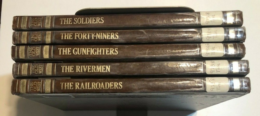 The Old West Time Life Series 1975 Replacement Volumes Choose your title. Price per book Very Good Choose Which Volumes you want to purchase above. All Volumes are $5.95 each. For multiple volumes place each volume in cart individually and Shipping discount for multiple books purchased is calculated. USED Very GOOD Former L ibrary Book Hardcover leather bound Each Book has normal library markings including card holder/reference sticker and library call number on spine. Some cover scuff/indents on cover with some bumped corner and folded or wrinkled pages. It has school and/or library name blacked out with marker or white blackout sticker on page edges, cover and inside. Reinforced with white or clear library tape on some inside pages. Publisher is Time Life Books This listing is for individual volumes only not the set. List of individual books listed in Title bar above. Some books might have been sold so the check with the variation above to insure the book you want is available. 1. The Pioneers 2. The Texans - Quantity 2 3. The Townsmen 4. The Spanish West 5. The Scouts 6. The Soldiers 7. The FortyNiners 8. The Gunfighters 9. The Rivermen 10. The Railroaders Hut 4c