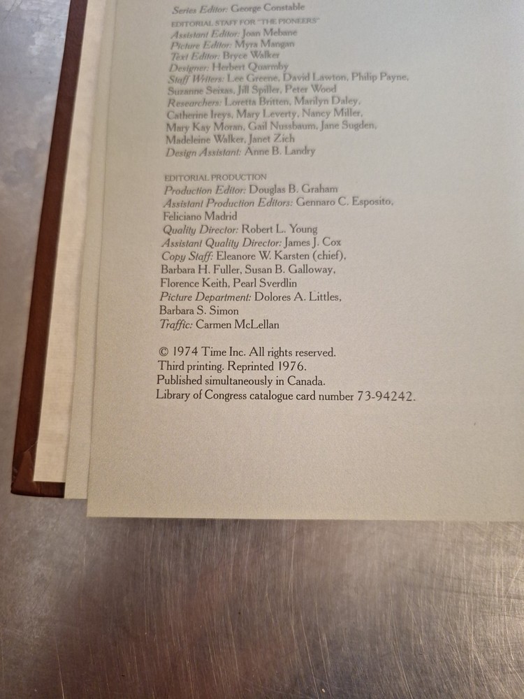 Embark on a journey through the thrilling days of the Old West with "The Pioneers" by Huston Horn. This hardcover book, part of the esteemed Time Life Historical Series, offers an engaging look into the rugged lives of America's early settlers. With vivid illustrations and a rich narrative, it's a compelling read for both history enthusiasts and lovers of the Western genre. "The Pioneers" is a fourth edition published in 1976 by Times Books, featuring 240 pages of nonfiction storytelling. It measures 8.5 inches in height, 11 inches in length, and 1 inch in width, making it a substantial yet comfortable size for reading at home or on the go. This well-preserved vintage piece is a valuable addition to any collection, bound in faux leather with a sturdy feel that reflects its storied past.