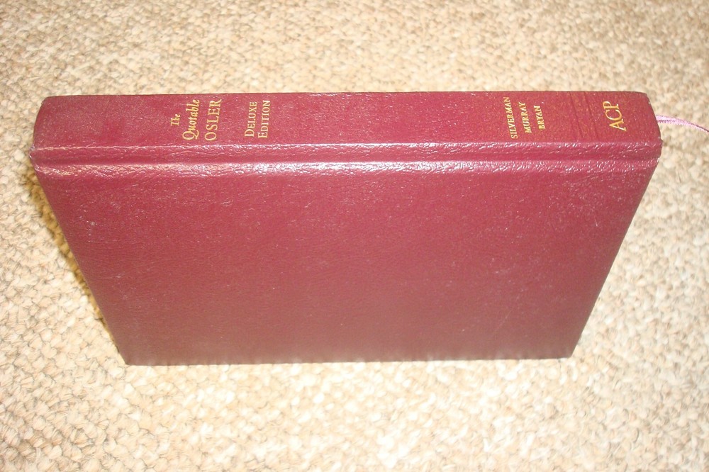 This listing is for The Quotable Osler. American College of Physicians Deluxe Edition in the leather cover The book is like new and suitable for gifting Please feel free to contact me with any questions and do check out my other listings. General Information I am a serious quality eBay seller. I try to list accurately and then I treat people as I would like to be treated myself. Good old customer service is what that's called. I have a wide array of items up for sale so I would recommend that you check my other listings and come back and see what else gets listed in the future. Shipping I do my best to ship safely and securely. I use the Postal Service's ground advantage, media mail or priority mail except in odd occasions where I use UPS. Shipping for this listing will be by media mail within the US. If you live in the Grand Rapids, MI area I will allow for personal pick up from my home. Obviously if you pick an item up you don't pay for shipping.