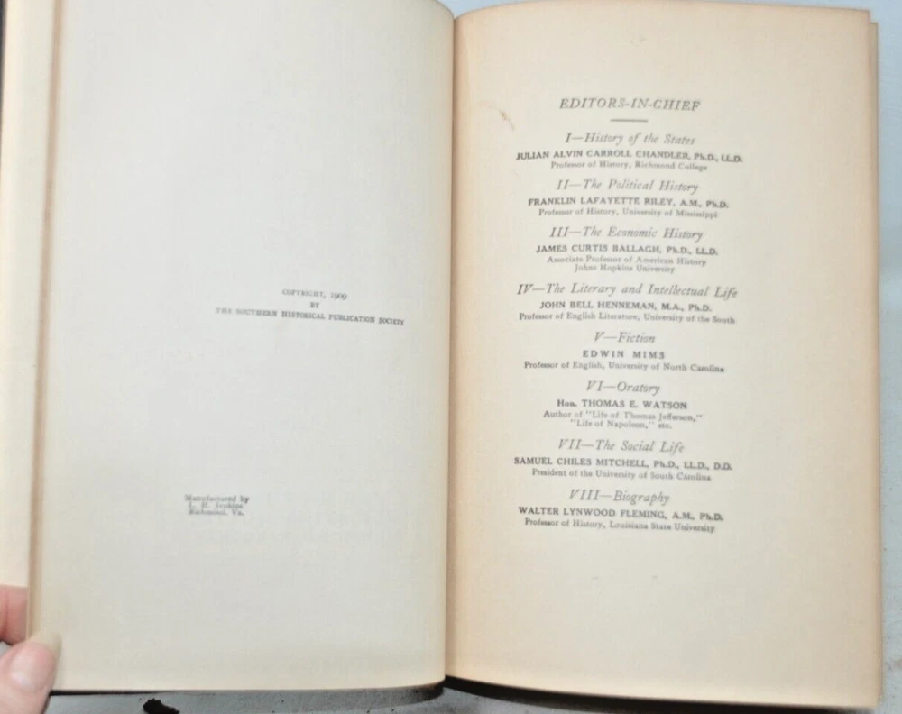Antique Book Leather Bound 1st Edition - 1909 THE SOUTH in the Building of the Nation Volume VII: HISTORY OF THE INTECLLECTUAL LIFE