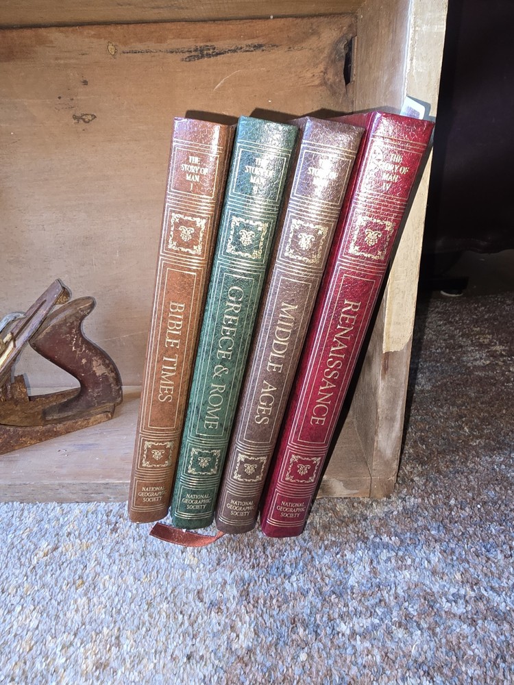 Dive into the past with "The Story of Man Volume 1-4," a comprehensive hardcover series from the National Geographic Society, published in 1977. Each book in this collection offers a rich visual and narrative journey through history, binding captivating illustrations with insightful text that explores the evolution of society and culture.Authored by the National Geographic Society, these books are a testament to historical events and developments, presented in English for a broad audience. The faux leather binding adds a touch of elegance, making it not only a scholarly resource but also a collectible item for enthusiasts of history and societal narratives.