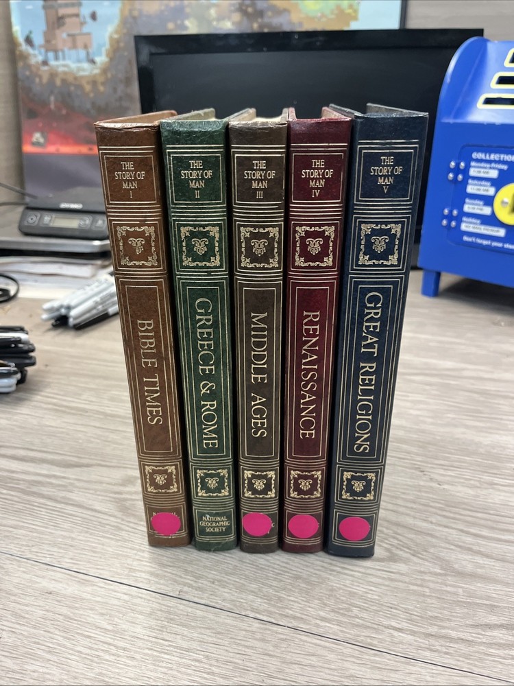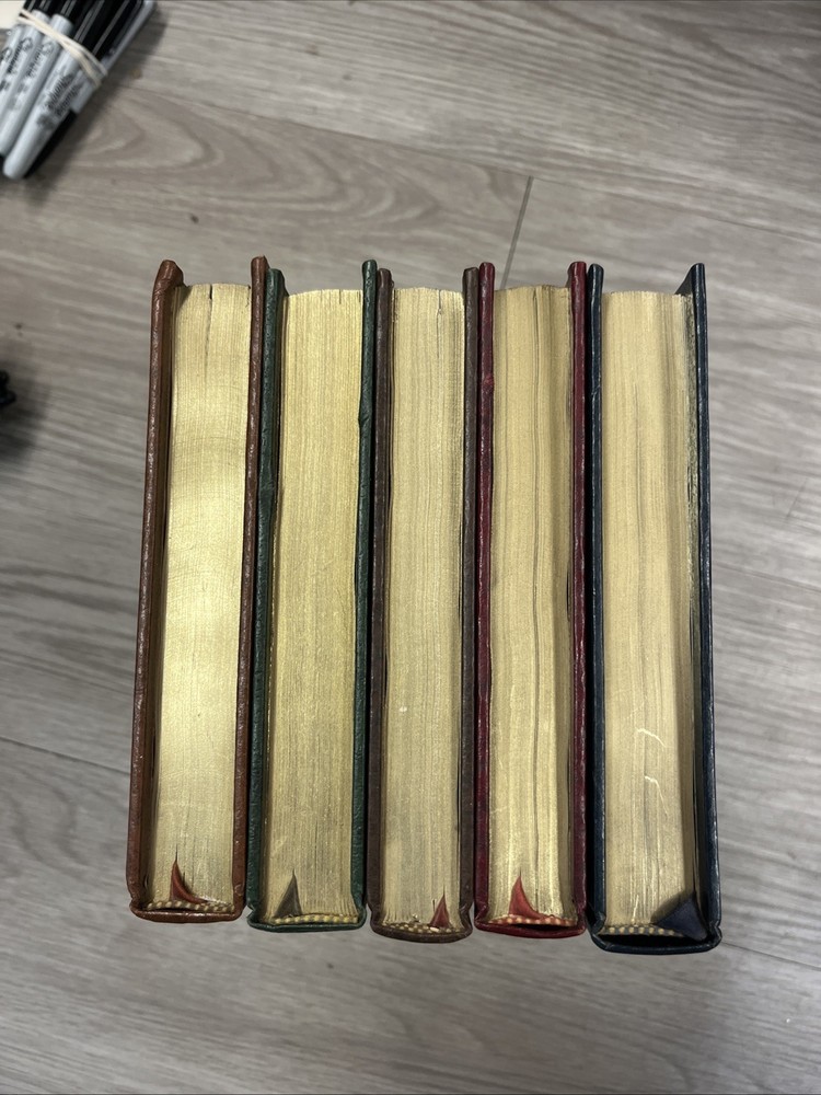 This includes books one through five. They are in good used condition as shown in the photos. They may have some marks, but overall very good. Four of them do have a pink sticker on the bottom of the binding as shown, they do come off easily.