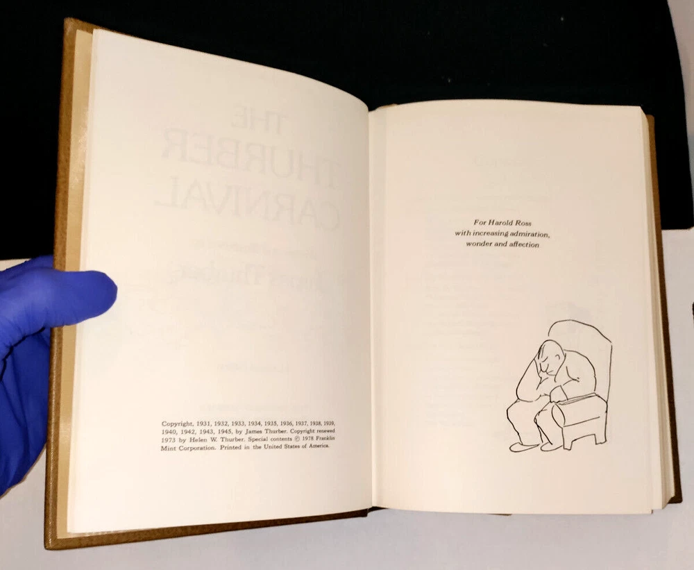 The Thurber Carnival By James Thurber Limited Edition Published By The Franklin Library: 1978 Acceptable condition used vintage hardcover, leather bound, gilded page edges; the bottom page edges have many scuffs/scratches, normal shelf wear, and etc. Thank You For Reading!!!!! New Books added every weekly!! SEE PICTURES FOR FURTHER DETAILS. PLEASE EMAIL ANY QUESTIONS BEFORE MAKING AN OFFER. NO RETURNS BASED ON CONDITION. boilerplate stuff: I am a lifelong comics nerd, and this is from my private collection direct to you in order to support my continued consumption of all things marvel, dc, dark horse, image, titan, IDW, and beyond. This has been read at least twice ,but I take great care to ensure they remain in great condition. I am reluctant to mark anything as NM because even brand new off the wall comics often have blemishes and imperfections such as spine crease and dings. These are multiple read copies in very fine condition. All comics are bagged and boarded and shipped with appropriate packing material to ensure the fidelity of the merchandise. The PICTURES in this item are of the EXACT SAME ITEMS you will receive if won. I will report any nonpaying winners. All items are AS IS. No refunds. All sales are final. No international shipping. Please ask questions before making a bid. 5 stars please, I am doing everything in my power to make sure my customers are satisfied with their shopping experience. Any concerns problems, issues or trouble please contact me and allow me to help matters before leaving negative feedback. Payment is expected within 3 days of purchase via PayPal. After receiving payment I normally ship within 2-3 days (Mon-Sat). I use USPS priority shipping and carefully package items with the appropriate boxes, packing materials, bubble mailer envelopes, and etc as is appropriate to safeguard these valuables during transit. Be aware of shipping costs, Ebay fees to the seller, charges by paypal for their service, packing materials, the fuel used to transport the product to the carriers, and other variables can eat into the profit of these transactions sometimes up to 50% of the possible value provided by the piece. I have done my best to provide quality items on auction style listing; I am a single private seller trying to provide high quality items at a bargain level. Remember next time I may be the customer so please be courteous and respectful in your dealings and I will strive to do the same. Nonpayment will be reported. Thank you for your patronage, and have a nice day.