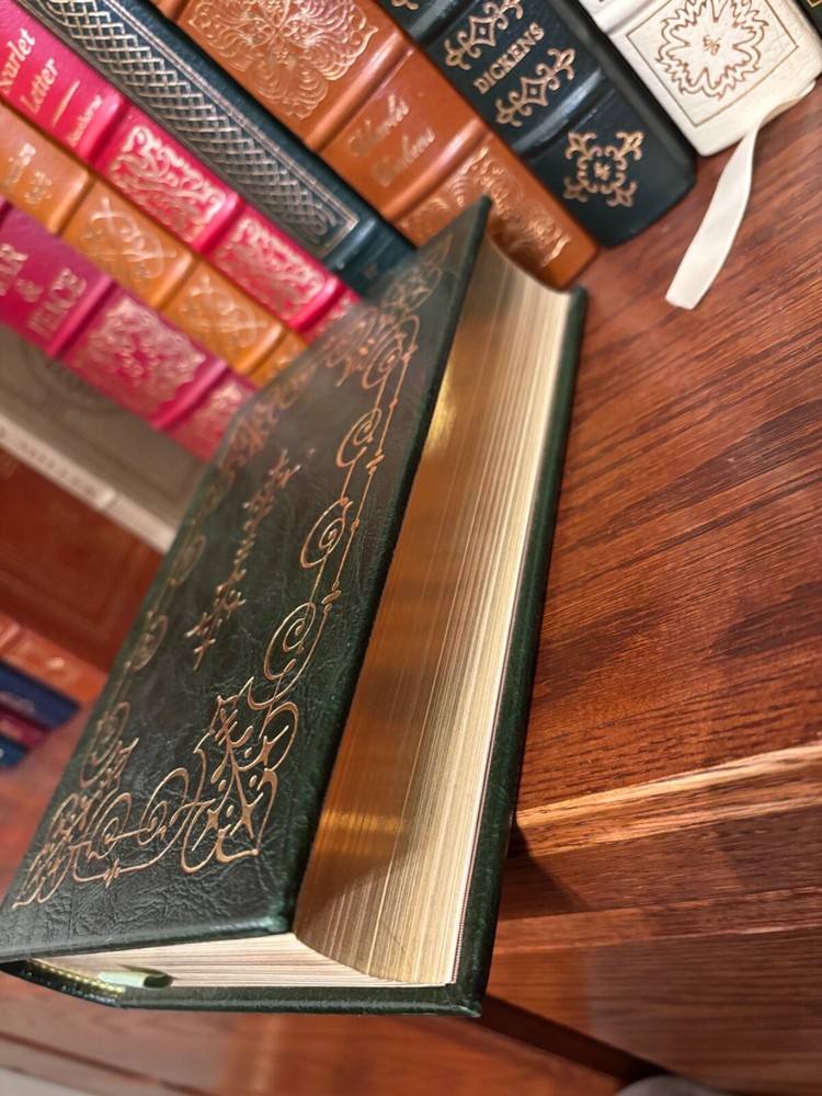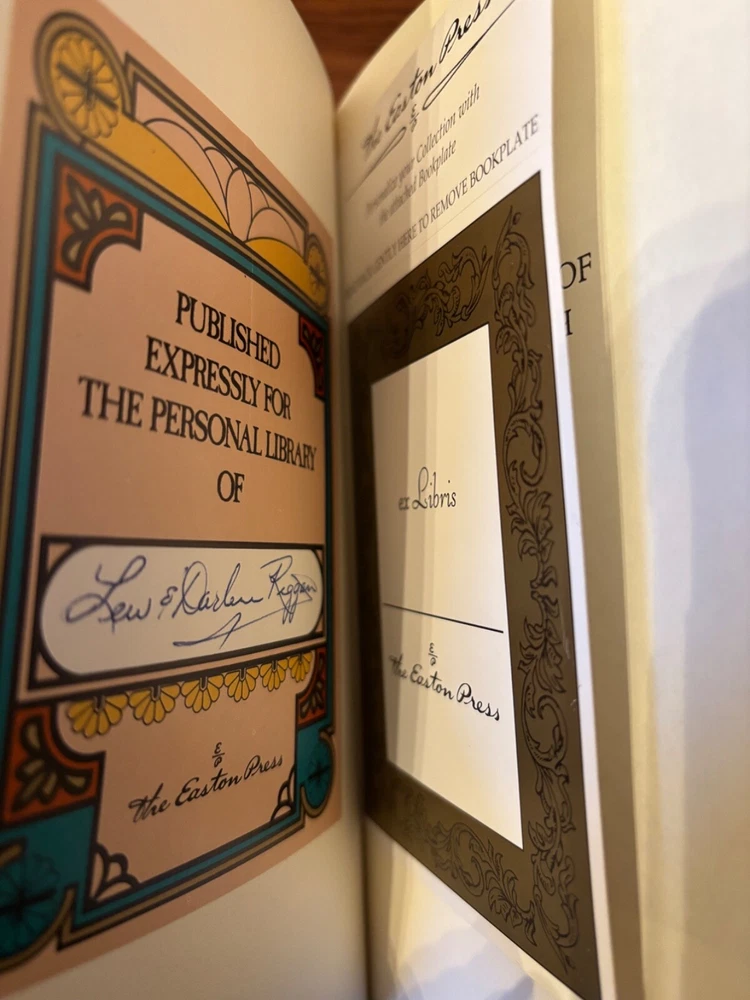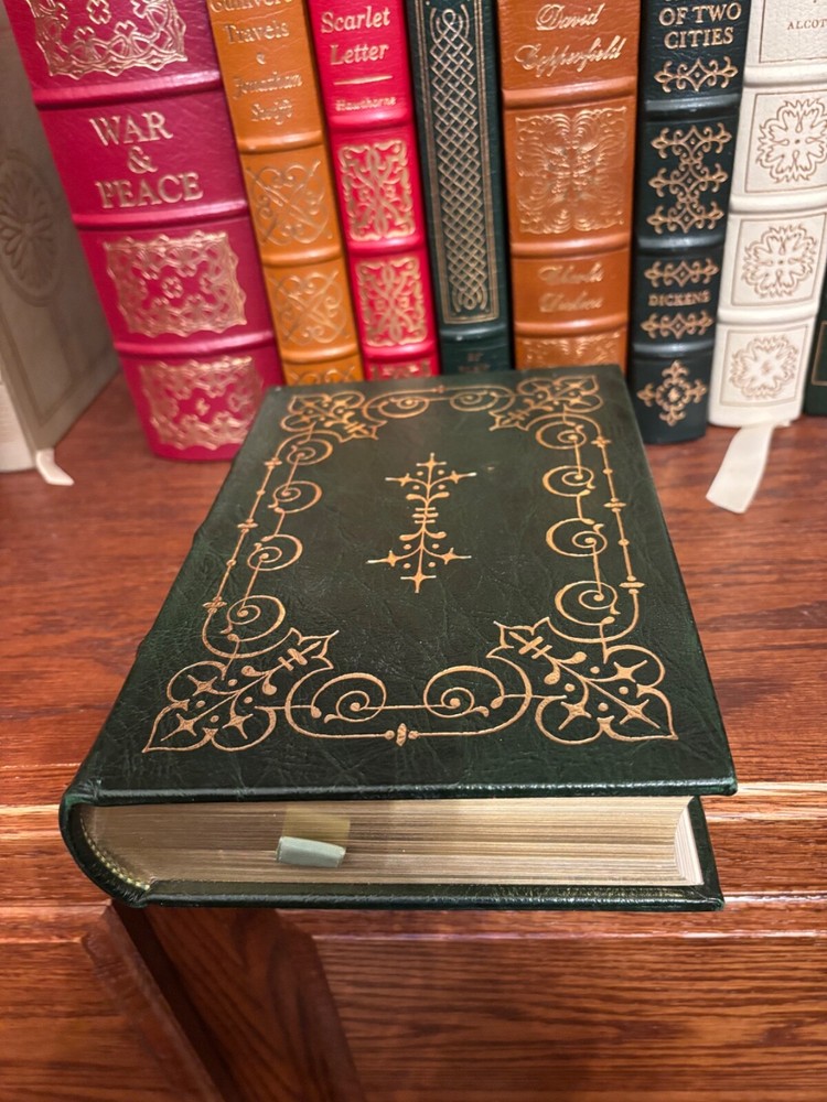 Easton Press(1980)full leather hardcover, 22K gold accented, decorated endpapers, ribbon marker, full color illustrations, book is in “Near Fine” condition, obviously unread and appearing unused, bookplate affixed to early page, I will provide a new, blank bookplate to place over old one if desired, slightly sunned front endpaper, pictured ........(please see my many feedbacks for an idea of how I grade books and generally do business) (see my EBay store for the finest books & prices, many signed).......(No remainder marks or price-clipping)...............Always shipped in a box, well protected