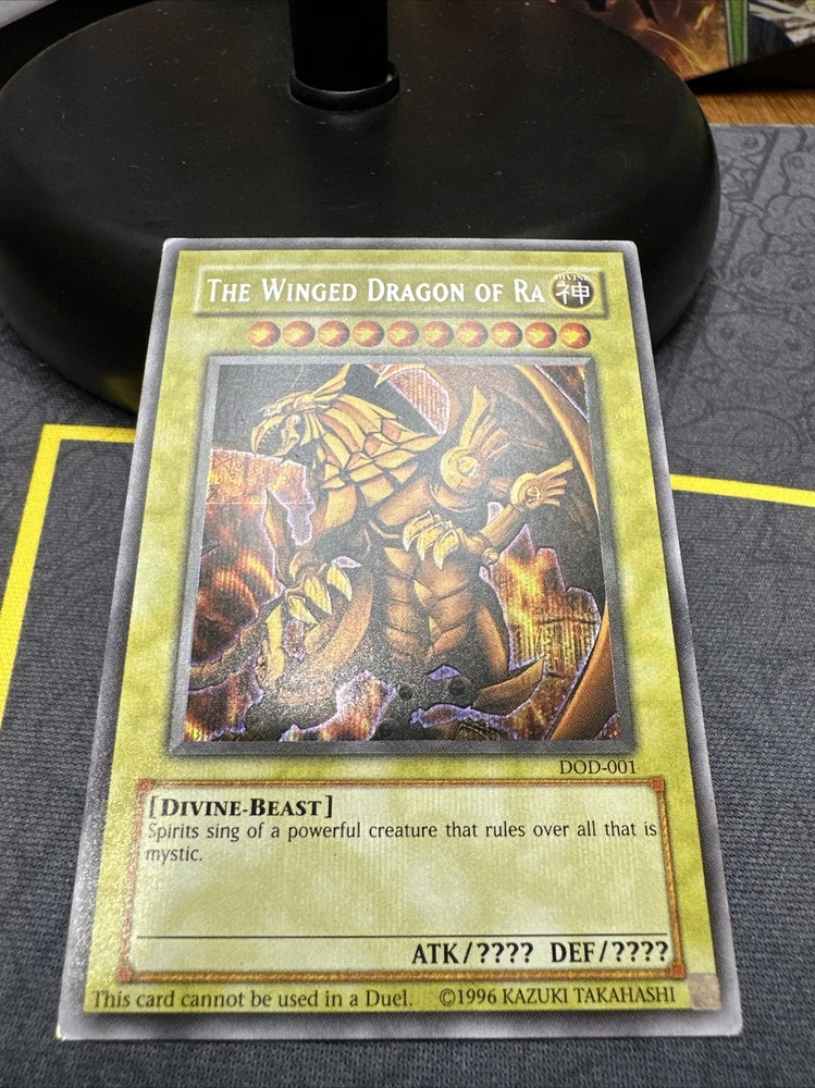The Winged Dragon Of Ra DOD-001 LP/MP Dawn Of Destiny Promo Prismatic Rare. Condition is Ungraded. Shipped with USPS Ground Advantage....