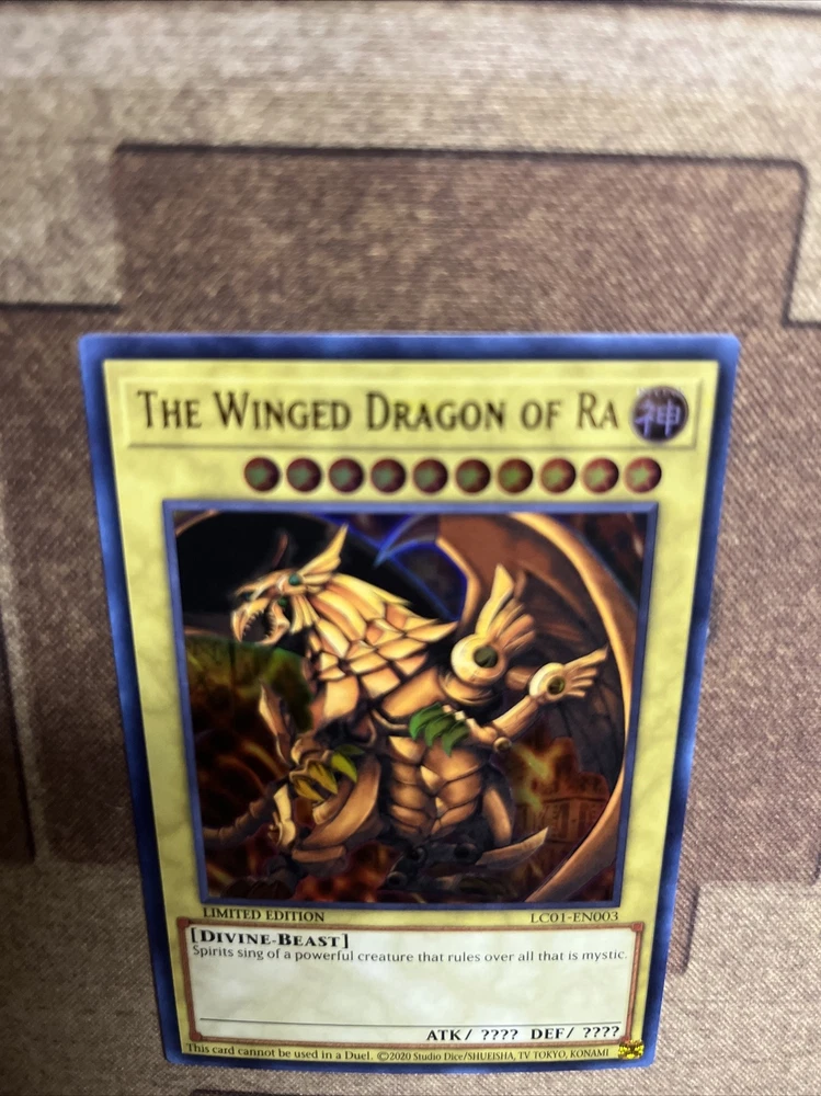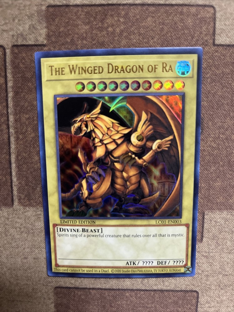 Winged Dragon Of Ra Rare YuGiOh Card LC01-EN003 $ 1.85 The Winged Dragon Of Ra LC01-EN003.... Flower Bowl quantity Add To Cart Description Specifics Reviews (3) Description The Winged Dragon Of Ra LC01-EN003. Specifics Card Name The Winged Dragon of Ra Game Yu-Gi-Oh! TCG Reviews Rated 5 out of 5 Davide542c81 Responsive seller and card is well packaged and in great condition. Extremely happy with purchase. Rated 3 out of 5 user32551158 Arrived well packaged and in great condition. Seller even sent extra card's Rated 4 out of 5 ignivs7ebdc8 Arrived fast and well protected and no damages to the card