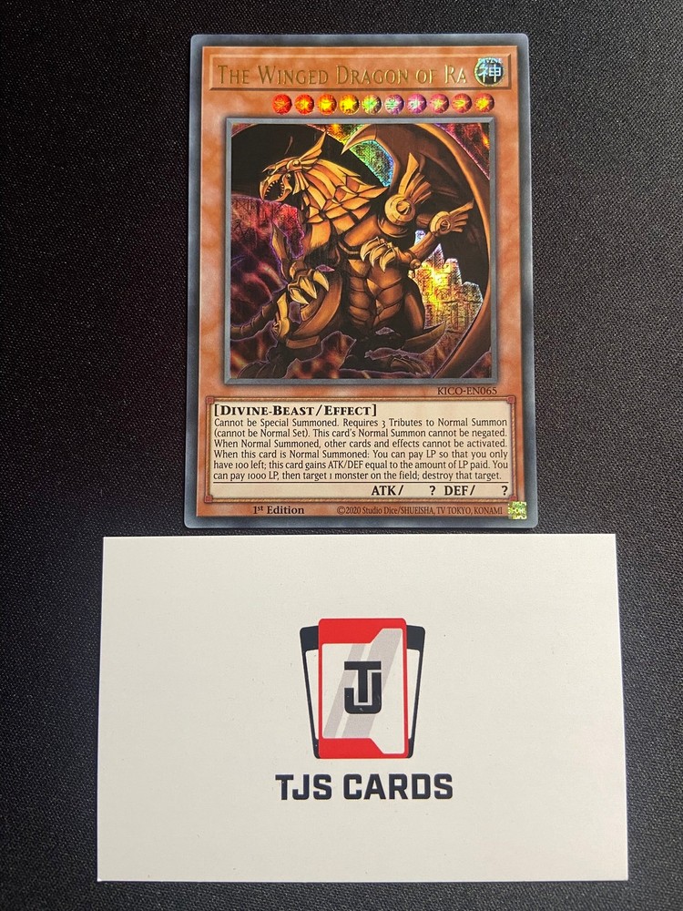 The Winged Dragon Of Ra - Pharaoh's Ultra Rare 1st Edition KICO-EN065 - YuGiOh The Winged Dragon Of Ra - Pharaoh's Ultra Rare 1st Edition KICO-EN065 - YuGiOh Card as seen in the images provided. If multiple quantities are available, you may not receive the exact card pictured, however, the card will be in the stated condition. If there are imperfections hard to see in the original images, I have provided more images to show these All cards are near mint, unless stated otherwise, other conditions are as follows: Near Mint (NM) Lightly Played (LP) Moderately Played (MP) Heavily Played (HP) Damaged (DMG) Listing and template services provided by inkFrog