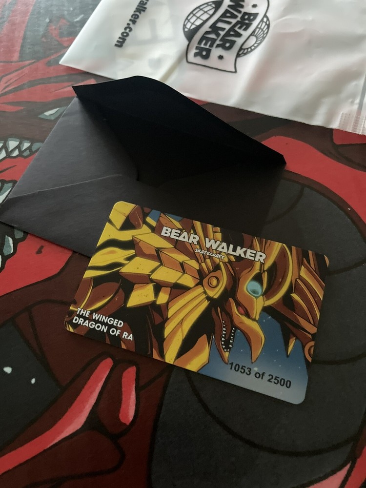 This skateboard deck is a must-have for Yu-Gi-Oh! fans who love to shred! The Winged Dragon of Ra design is incredibly detailed, making it stand out at the skatepark. Bear Walker nailed it with high-quality construction that holds up well for tricks or cruising. Whether you're a beginner or a pro, this deck delivers both style and performance. The limited edition makes it even more special—grab it before it's gone!