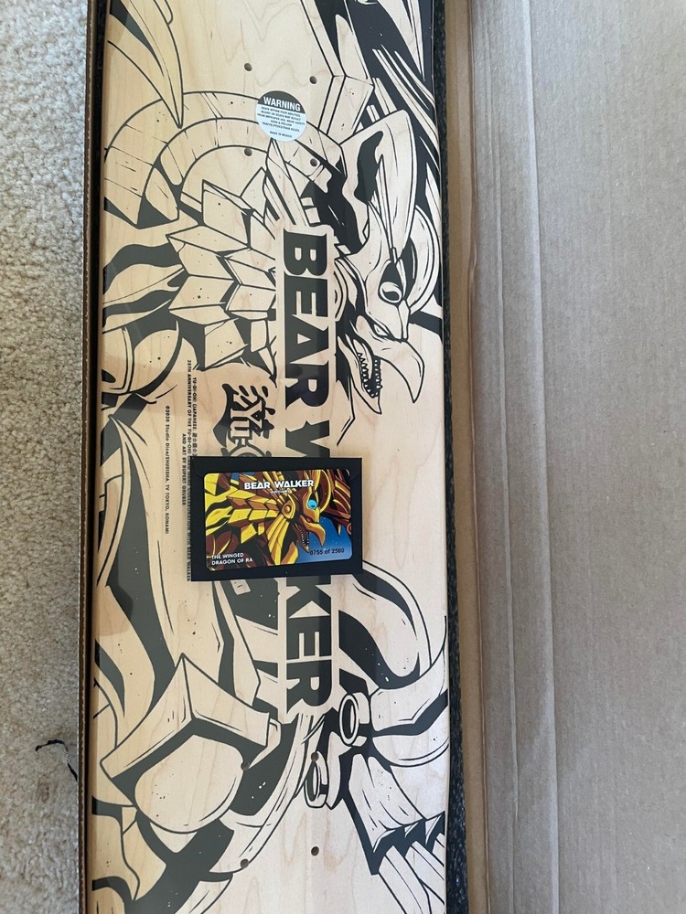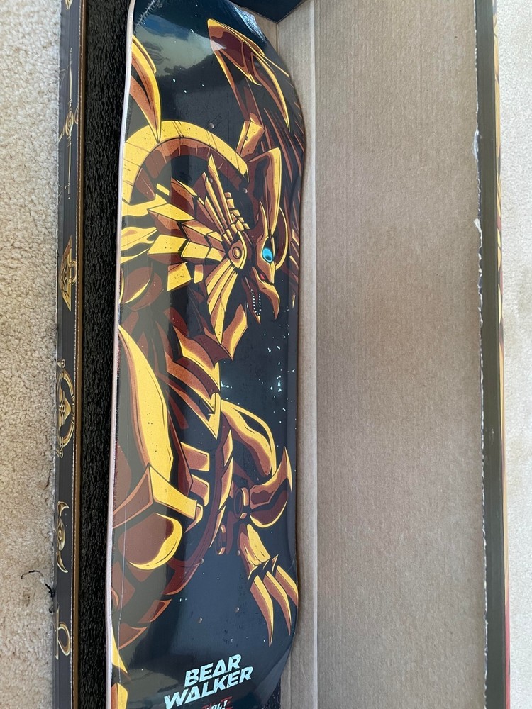 This limited edition skateboard deck features the iconic Winged dragon of Ra from the popular Yu-Gi-Oh! game....