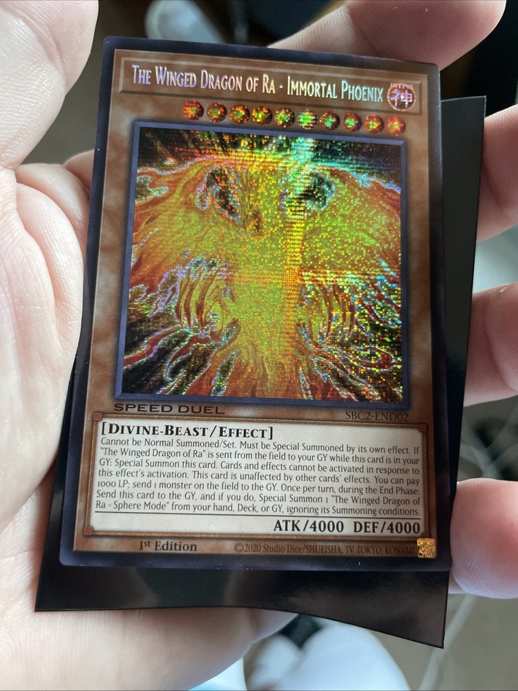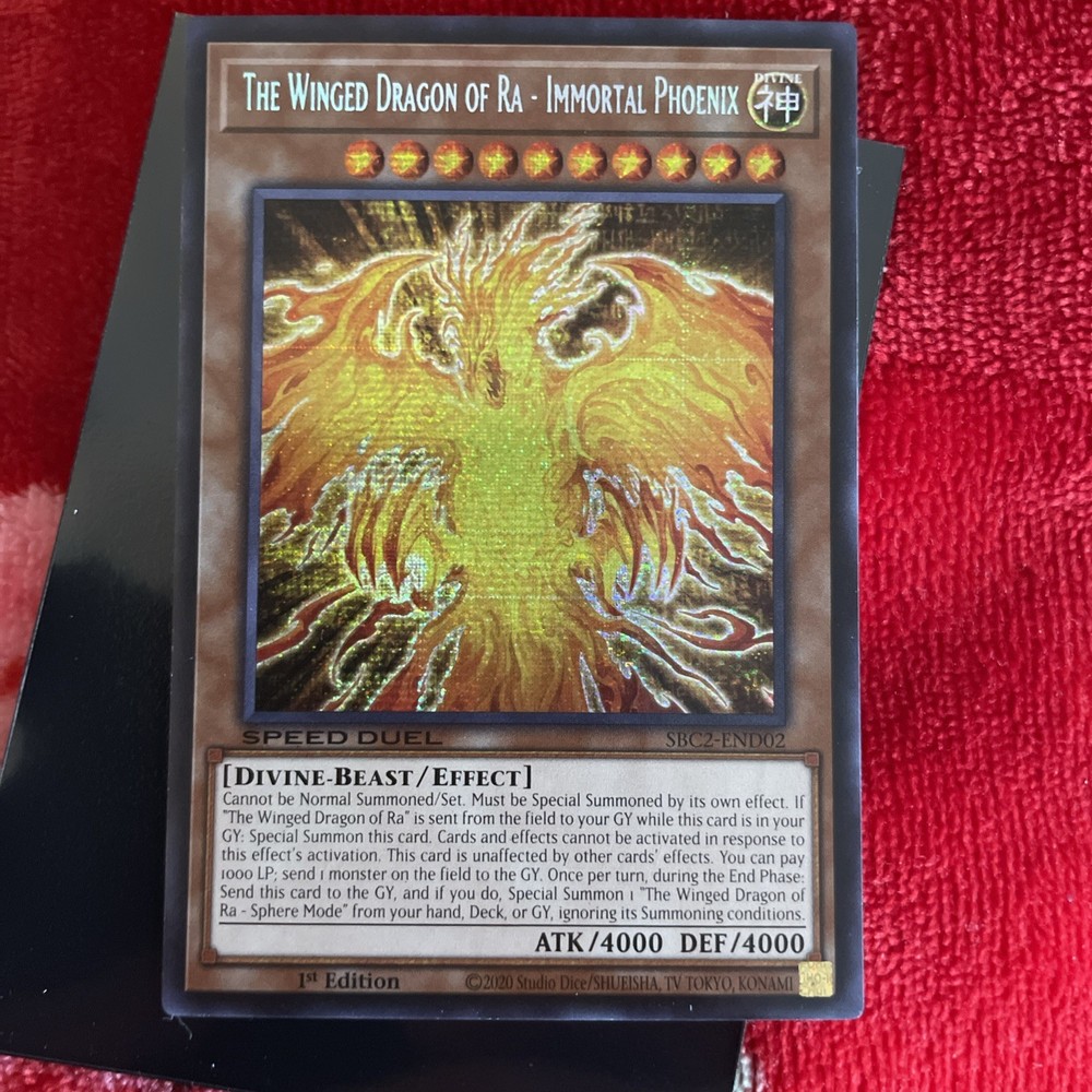 2020 1st Edition Speed Duel Battle City Finals. The Winged Dragon Of Ra-Immortal Phoenix SBC2-END02. Yu-Gi-Oh. Card never been played with. You receive the exact card shown in pictures. I ship all my merchandise through USPS. I package all my merchandise with the utmost care and as much protection as possible. Anyone has any questions or needs more pictures ect. Please feel free to message me. Thanks very much, have a great day!