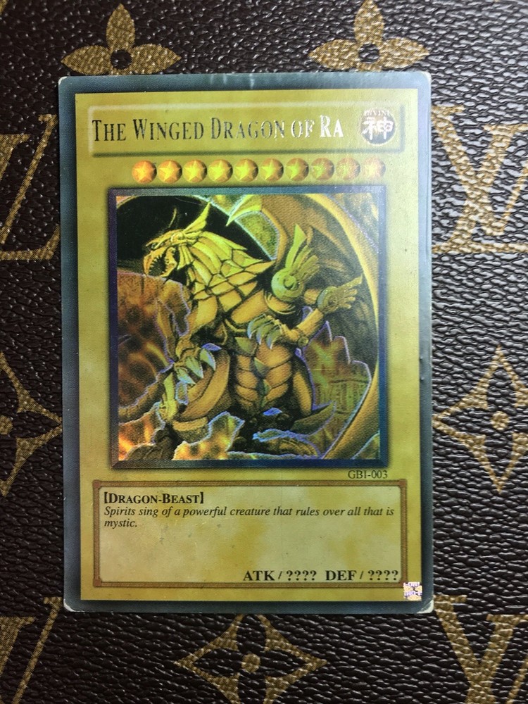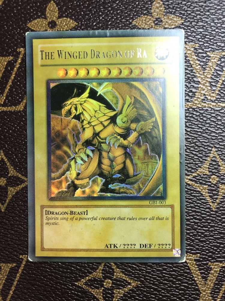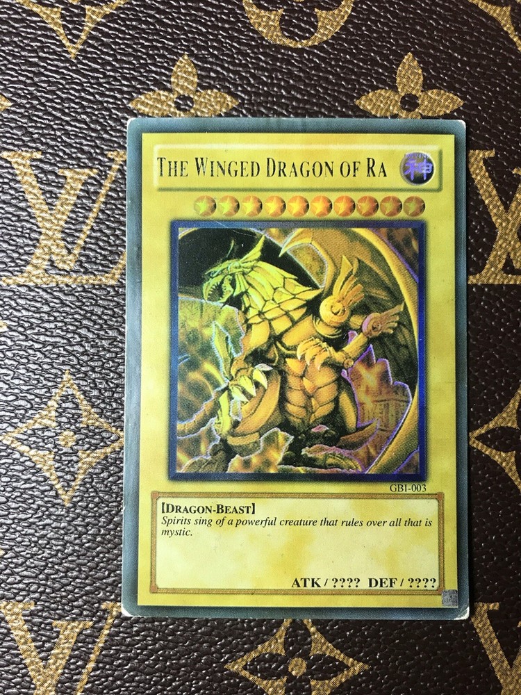 The Winged Dragon of Ra GBI-003 Ultra Rare MP. Condition is near Mint, taken out of box and put into sleeve! All cards are shipped with sleeves!!! Shipped with USPS First Class. OFFERS ACCEPTED, PRICES ALWAYS NEGOTIABLE