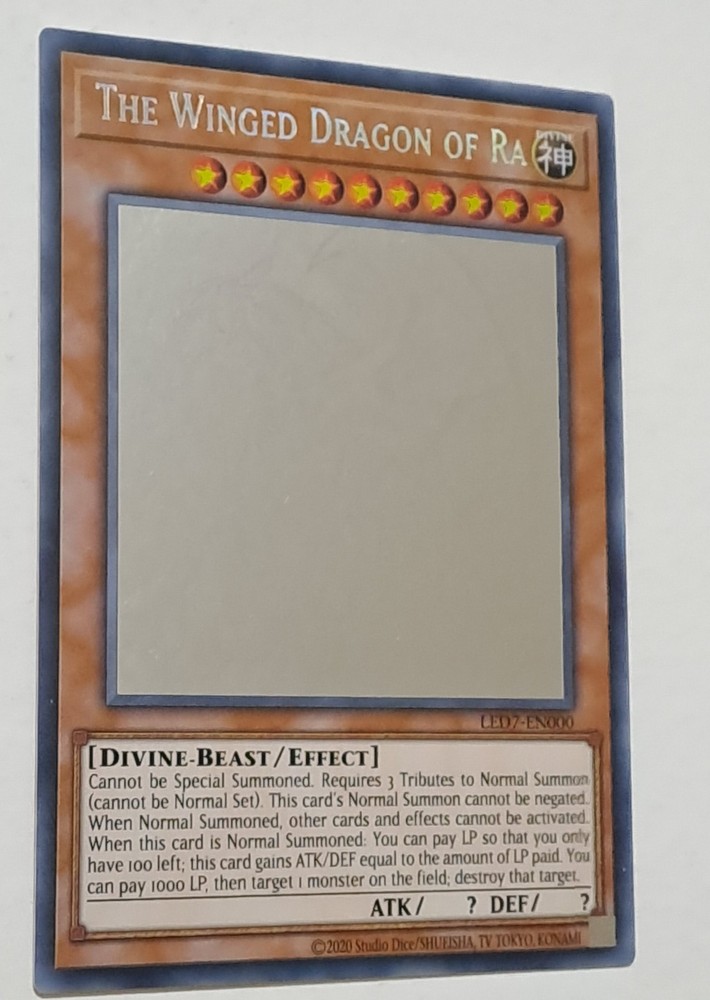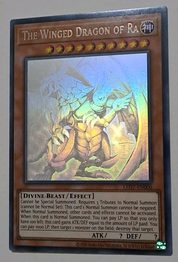 YuGiOh The Winged Dragon Of Ra LED7-EN000 Ghost Rare 1st Edition NM Additional photos can be provided on request. The card will be sent sleeved and with hard protector to keep it in mint condition. Also tracking number will provide.