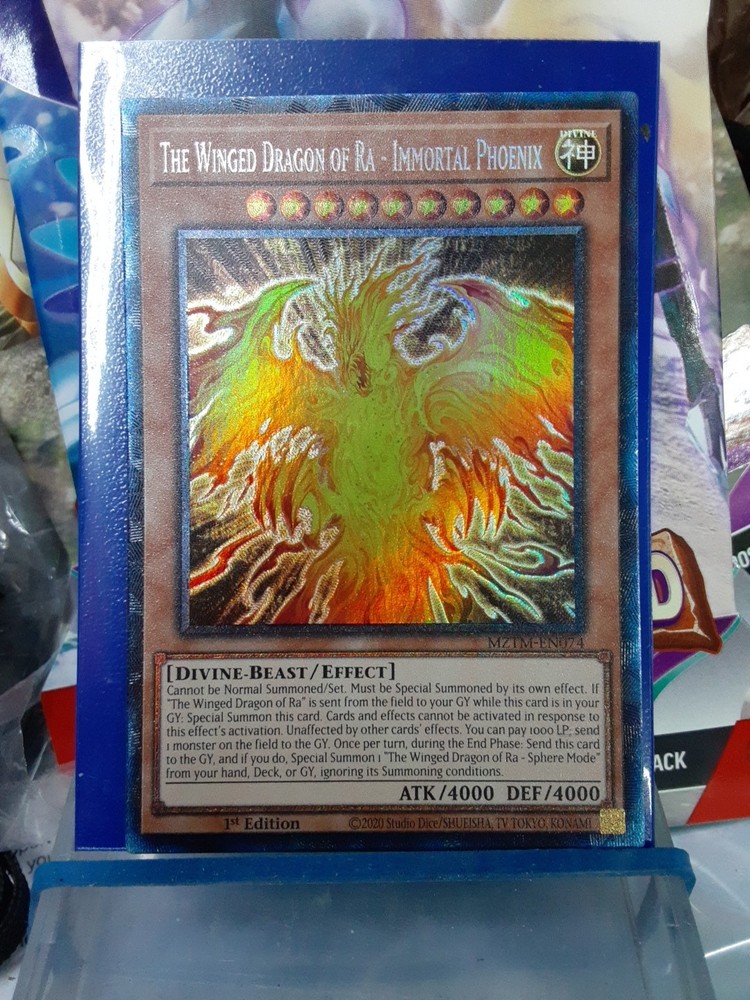 Elevate your Yu-Gi-Oh! TCG collection with the majestic The Winged Dragon of Ra - Immortal Phoenix card, a prized addition from the Maze of the Master set. Bearing the card number MZTM-EN074, this Effect-type monster is not just a powerful combatant with an attack and defense of 4000, but also a collectible gem for enthusiasts. With its Divine attribute and Rare rarity, it stands as a testament to the strategic depth and aesthetic appeal of the game. Crafted by Konami and presented in English, this card showcases the 1st Edition feature, making it a special piece for collectors and players alike. The Winged Dragon of Ra is a creature that embodies the essence of Divine-Beast type monsters, offering a unique blend of spellcaster prowess and raw strength to enhance your deck. Whether for competitive play or simply as a centerpiece of your collection, this card is a celestial asset.
