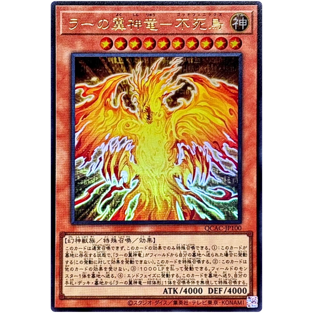 Item Description QCAC-JP100 The Winged Dragon of Ra - Immortal Phoenix Front Back Card Name : The Winged Dragon of Ra - Immortal Phoenix Character : The Winged Dragon of Ra - Immortal Phoenix Rarity : Ultra Rare Card Number : QCAC-JP100 Set : Quarter Century Art Collection Type : Effect Monster Language : Japanese Card Condition : Near Mint Purchased cards will be clipped with cardboard, waterproofed, and shipped without any scratches or folds. Cards over $20 will be packed even tighter with a loader for each card. Shipping Policy Free shipping worldwide. Free shipping does not include tracking. There is an additional cost of US $4 for tracking. If you purchase cards totaling US $30 or more, you will receive a free tracking number. All of the products will be shipped from Japan. Economy Shipping Air mail ( no tracking ) Free Shipping Delivery time : About 2-4 weeks Standard Shipping Air mail ( with tracking ) US $4 Delivery time : About 2-4 weeks Expedited Shipping FedEx or EMS or DHL ( with tracking ) US $24 Delivery time : About 1-2 weeks Payment Policy We accept all major credit cards and Paypal payments. Return Policy We hope you will love your purchase, houever if you need to return it, we have a 30 day return policy. International Buyers Import duties, taxes, and charges are not included in the item price or shipping cost. These charges are the buyerʼs responsibility. Please check with your countryʼs customs office to determine what these additional costs will be prior to bidding or buying. If the cancellation is due to the buyer, wewill charge a fee. If there is a remote charge for your address, we will charge you for additional shipping. We are honored to receive the eBay Japan Awards 2022! I am thrilled to share that my store has won the eBay Japan Awards 2022 ! This amazing accomplishment wouldnʼt have been possible without our wonderful customers. A heartfelt thank you for your ongoing support. We will continue to improve our services, offering a diverse selection of items and top-notch customer care Thank you for helping us achieve this prestigous recognition, and we look forward to serving you in the future! Copyright ©️ 2024 Animart Japan