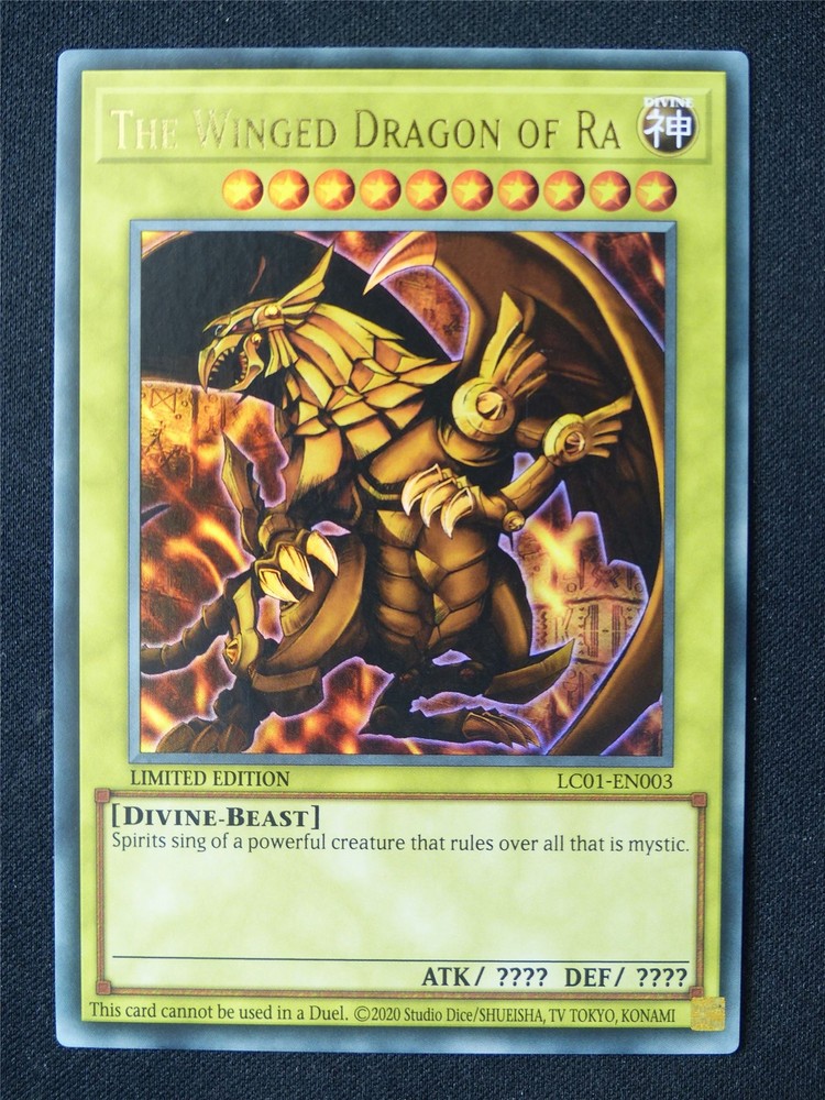 BUY 2, GET 3rd FREE !!! Just add 3 eligible items to basket. The Winged Dragon of Ra LC01 Ultra Rare - limited ed Yugioh Card #L Our stock code: LORC09-L Used. Card is in great condition but is used not new - It may have VERY slight wear - please see the picture - this is the card for sale, not a stock picture. Only pay shipping once no matter how many single cards you order! Offer includes worldwide shipping! If you would like any further information about this item, or have any problems with our products or with our service please get in touch with us - We'll do our best to help!