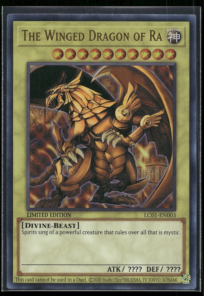 This listing is for the purchase of one The Winged Dragon of Ra LC01-EN003 Ultra Rare from the Legendary Collection: 25th Anniversary Edition. Please make sure to read all of the description and review all photos before adding this item to your cart. All sales will be considered final sale and I do not accept cancellations on orders once made.