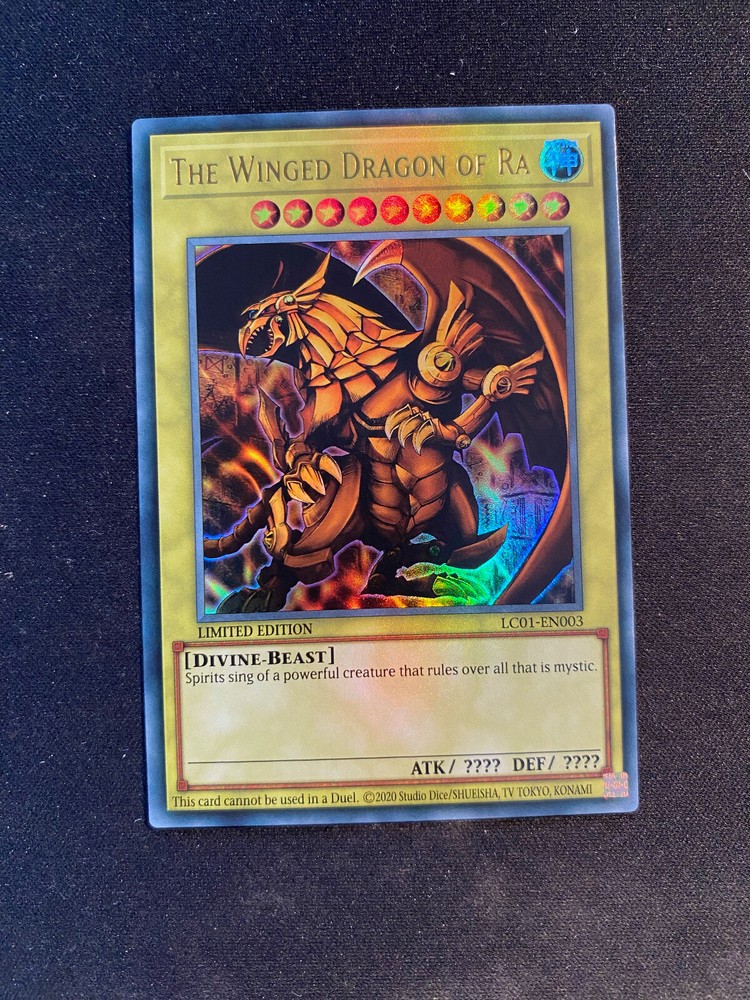 The Winged Dragon of Ra - LC01-EN003 - Ultra Rare - N/M Card is Limited Edition Card is in Near Mint Condition and pack fresh! Combined Shipping is offered on all of my TCG Listings. When Checking out with multiple cards in your cart, click ‘Request total from seller’. This will allow me to combine the shipping for multiple cards if purchased together. If this does not show up for you, then please message me and I’ll create a listing for your order. Any Further Questions Please Message Me Thanks