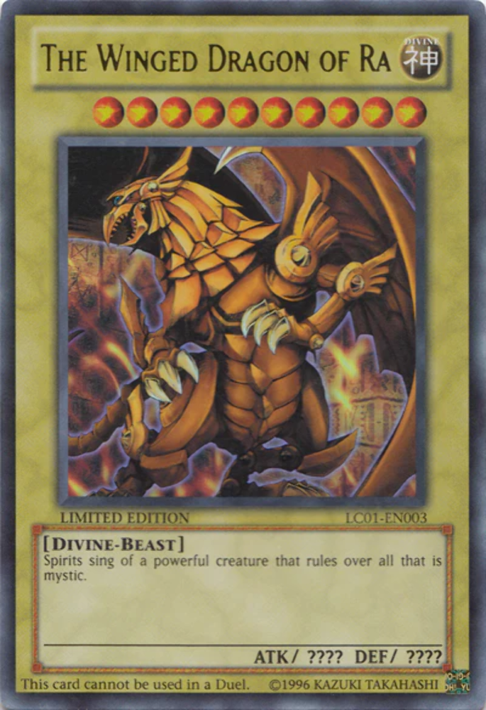 The Winged Dragon of Ra [LC01-EN003] Ultra Rare Set: Legendary Collection 1 Card type: Normal Monster Rarity: Ultra Rare Attack: ???? Defense: ???? Spirits sing of a powerful creature that rules over all that is mystic. The Winged Dragon of Ra [LC01-EN003] Ultra Rare Set: Legendary Collection 1 Card type: Normal Monster Rarity: Ultra Rare Attack: ???? Defense: ???? Spirits sing of a powerful creature that rules over all that is mystic. × Shipping info Click the Shipping & Payments tab above the listing description for more info Price: £0.75 (local shipping) Click the Shipping & Payments tab above the listing description for more info! Additional delivery notes PICK UP OPTION Sorry, our items are NOT available for pick-up. PAYMENT Immediate payment is required upon selecting "Buy It Now" or upon checking out through the cart. We accept payment via All Major Credit Cards (Visa, Mastercard, AMEX, Discover), Google Pay, PayPal, & Apple Pay (on mobile & eBay App). Thank you for shopping with us on eBay! Additional Information No additional information at this time Ask seller a question Contact To contact our Customer Service Team, simply click the button here and our Customer Service team will be happy to assist. Ask seller a question © Lvl Up Gaming UK Shipping & Payments Shipping is a flat rate across GB at a rate of £0.75 Payment Accepted Payment Methods Immediate payment is required upon selecting "Buy It Now" or upon checking out through the cart. We accept payment via All Major Credit Cards (Visa, Mastercard, AMEX, Discover), Google Pay, PayPal, & Apple Pay (on mobile & eBay App). Thank you for shopping with us on eBay! Returns Returns are accepted Items must be returned within 30 days of the auction ending Buyer will pay for return shipping. eBay integration by