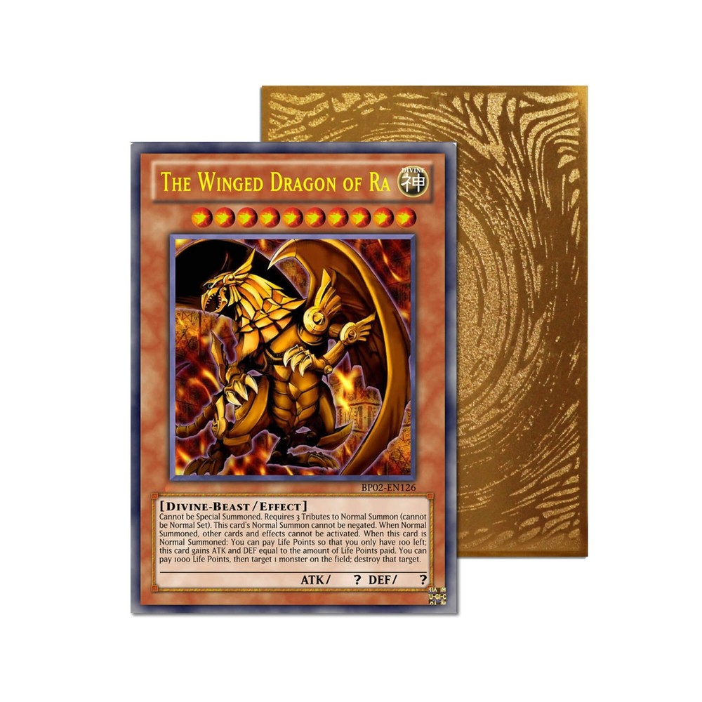 It’s time to DUEL with our custom printed metal orica cards! This design is printed with our exclusive The Winged Dragon of Ra design. Currently only available in gold metal color. All designs printed in Canada! Free shipping as letter mail to US and Canada. Please note this option does not include a tracking number or shipping insurance. There is an option to upgrade to tracked shipping at checkout. Features: ➡ Awesome vibrant artwork that does not scratch or peel off! ➡ The back is embossed with the same illustration found on the back of a real Yu-Gi-Oh! card. ➡ The thickness is slim and fits in a card sleeve, but the metal will not bend or warp under normal use. ➡ The size is exactly the same as a Yu-Gi-Oh! card.