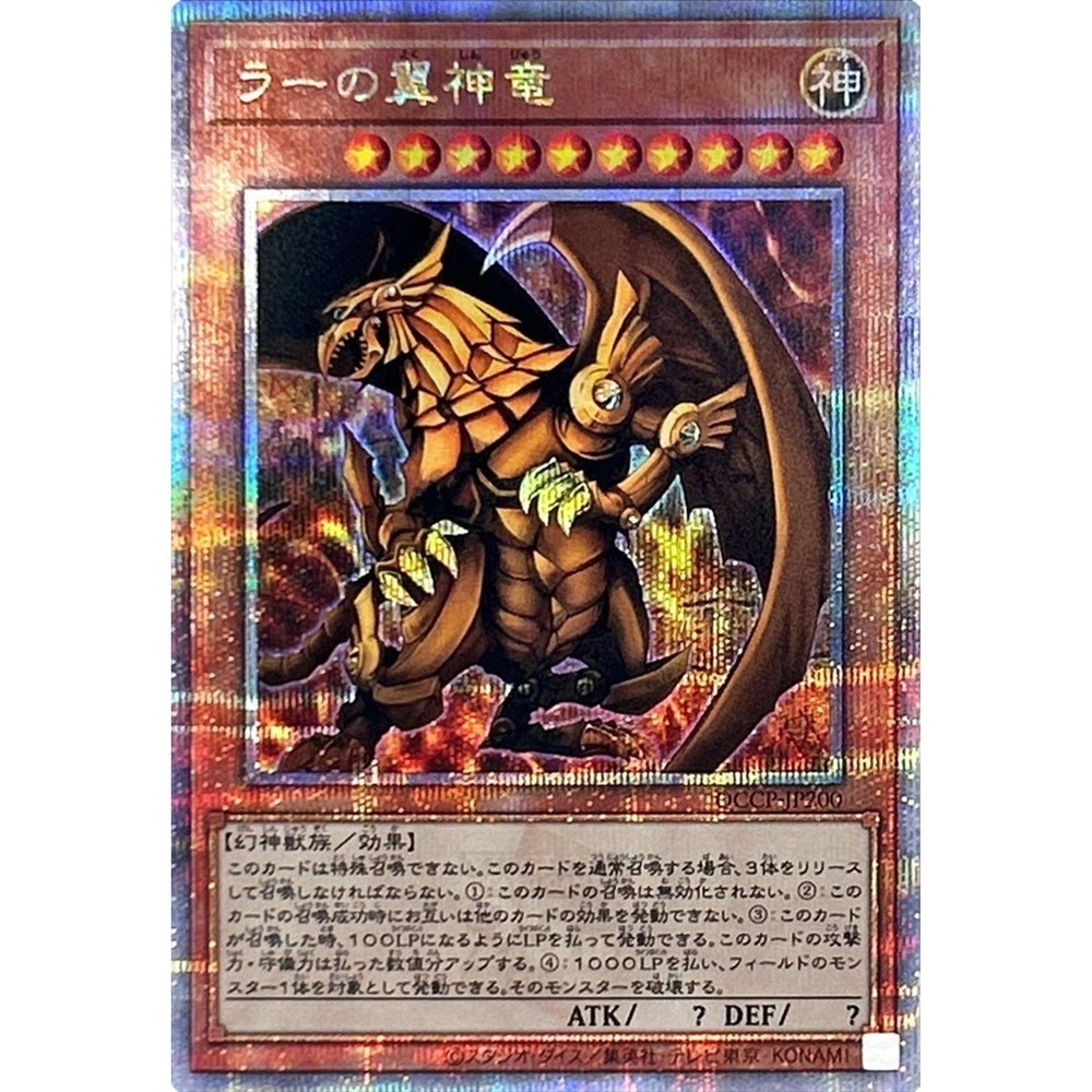 Description The Winged Dragon of Ra Quarter Century QCCP-JP200 side:Pride Japanese YuGiOh Condition : Near Mint Condition - As a Trading Cards collector myself, I can check the condition exactly. 【NM】Near Mint (4/4): Display minimal or no wear or damage. All surfaces and edges are pristine and appear “fresh out of the pack. 【EX】Excellent (3/4): Have slight corner and edge wear along with minor scratches on the surface, but no other flaws. 【VG】Very good (2/4): Have discernible flaws such as border and corner wear, noticeable scratches and creases, slight bends, notching, layering, and moderate discoloration or whitening. 【PR】Poor (1/4): Show a massive amount of wear and damage. Corners and edges will be rounded, chipped, or fuzzy, and there will be major discoloration, layering, notching, creasing, and scratches. - I follow “eBay card conditions and guidelines”. - Click here for details : https://pages.ebay.com/cardconditions/ Shipping Economy Shipping Japan Post Air Mail : takes about 1~2 weeks, +Handing time No tracking. Standard Shipping Japan Post Air Mail : takes about 1~2 weeks, +Handing time With tracking. Expedited Shipping FedEx or EMS : takes about 1~4 days, +Handing time With tracking. - Use a loader, waterproof pack, and put it in a cushioned envelope. - You can save shipping fees when you buy multiple items. No charge shipping fees for additional items. International Buyers - Please Note: Import duties, taxes and charges are not included in the item price or shipping charges. These charges are the buyer's responsibility. Please check with your country's customs office to determine what these additional costs will be prior to bidding/buying. These charges are normally collected by the delivering freight(shipping) company or when you pick the item up -do not confuse them for additional shipping charges. We do not mark merchandise values below value or mark item as "gift" -US and international government regulations prohibit such behavior.
