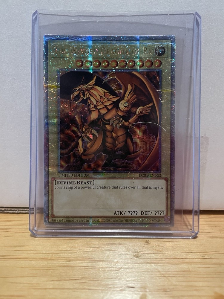 Unleash the power of "The Winged Dragon of Ra" from the Legendary Collection: 25th Anniversary Edition. This Quarter Century Secret Rare card, numbered LC01-EN003, is a must-have for collectors and duelists alike, featuring the might Divine-Beast type creature in stunning detail. Its limited edition status ensures its rarity and desirability for your deck or display.