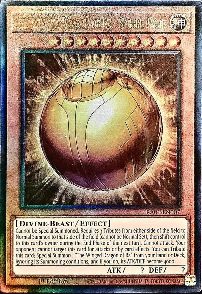 Bluefires Stuff daniel8769-2008 has 99.1% Positive Feedback Welcome! At my store, you will find collectibles and refurbished tech. From recycled memory chips and processors to a variety of storage drives and rebuilt desktops and laptops. I try to keep a variety of products available for everyone. From a single Yu-Gi-Oh! card to a full themed structure The Winged Dragon of Ra RA01-EN007. C ondition is "New". Shipped with USPS. Item Description Buyers Note: Near Mint for any collector or player. This card is in Near Mint or better. Card Name: The Winged Dragon of Ra RA01-EN007 - 1st Edition Set: RA01 - 25th Anniversary Rarity Collection Quantity: 1 Edition: 1st Rarity: Prismatic Ultimate Rare Condition: NM Payment Information & Terms of Sale Credit Cards: We accept Visa, MasterCard, American Express, and Discover Card through PayPal. Payments are due within 3 days of purchase date! Sorry, no exceptions! Orders are shipped within 24 hours of payment. Orders placed & paid after 12noon PST on Fridays, weekends (Saturdays & Sundays), and Holidays are shipped the following business day. Cards shipped First Class Mail are in a hard plastic top loader with a Waterproof/Tear resistant Bubble Envelope w/Delivery Confirmation, NO INSURANCE! I RECOMEND THIS FOR DELIVERIES OUTSIDE THE CONTENINTAL USA. Continental USA & select countries (Canada, Europe, Australia) Residents of Puerto Rico can only use this service. Cards shipped eBay Standard Envelope for Trading Cards up to $20 are mailed in a standard letter envelope with a hard plastic top loader w/Delivery Confirmation. Delivery can take up to 3 to 5 business days . Continental USA & select countries (Canada, Europe, Australia) THIS SERVICE IS NOT AVAILABLE TO ADDRESSES TO PUERTO RICO. Cards shipped with free shipping are mailed in a standard letter envelope with a hard plastic top loader w/Delivery Confirmation. Delivery can take up to 3 to 5 business days . Continental USA & select countries (Canada, Europe, Australia) This service is excluded for Puerto Rico . I ship Worldwide! I am not responsible for any International customs, taxes, fees, etc. It’s the buyer’s full responsibility. Give up to 30 days time for deliveries outside the Continental U.S. I have no control over administration issues of services provided by other countries and their governments. Once product leaves the U.S please be patient if delivery is delayed. Condition Guide: I do not sell any cards that are in MINT condition, the best condition that we offer is near mint. Near Mint (NM) - Cards in Near Mint condition show minimal to no wear from shuffling, play or handling and can have a nearly unmarked surface, crisp corners and unblemished edges outside of a few minimal flaws. A Near Mint card may have a tiny edge nick or a tiny scratch or two, but overall look nearly un-played with no major defects or flaws. Lightly Played (LP) - Cards in Lightly Played condition may have minor border or corner wear or even just slight scuffs or scratches. There are no major defects such as water damage, bends or issues with the structural integrity of the card. Noticeable imperfections are okay, but none should be too severe or at too high a volume. Moderately Played (MP) - Cards in Moderately Played condition exhibit condition issues visible at a casual glance. Cards in Moderately Played condition can have border wear, corner wear, scratching or scuffing, creases or whitening, minor dirt buildup or any combination of mild examples of these marks. A Moderately Played card may have some form of a more major marking, such as spot water damage or creasing that doesnʼt affect card integrity, but not in combination with other issues such as scratches, scuffs or border/edge wear and not impacting a large area of the card. Heavily Played (HP) - Cards in Heavily Played condition show a severe amount of wear. Heavily Played condition can include cards that have major creasing, major whitening, major border wear or any combination of those flaws. (These flaws cannot prevent the card from being tournament playable when sleeved.) Damaged - Cards in Damaged condition can exhibit a tear, bend or crease that may make the card illegal for tournament play, even in a sleeve. Cards in Damaged condition may have extreme border wear, extreme corner wear, heavy scratching or scuffing, folds, creases or tears or other damages that impacts the structural integrity of the card