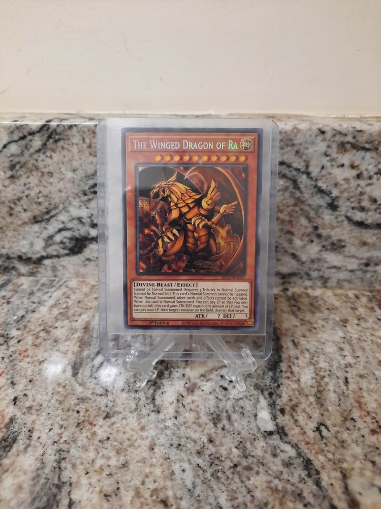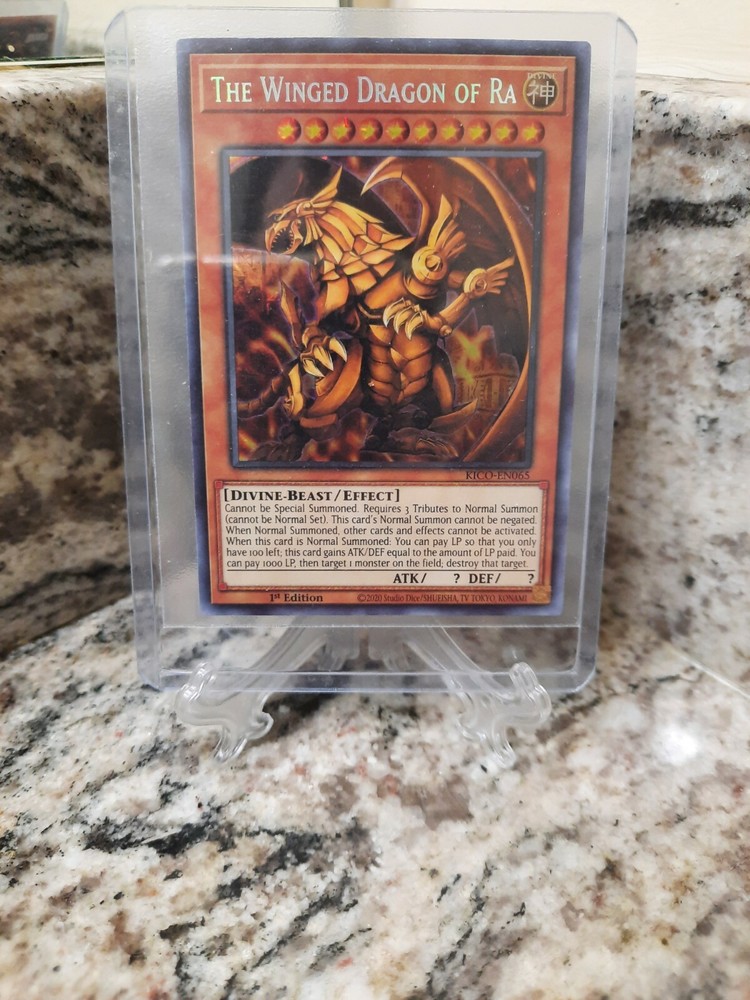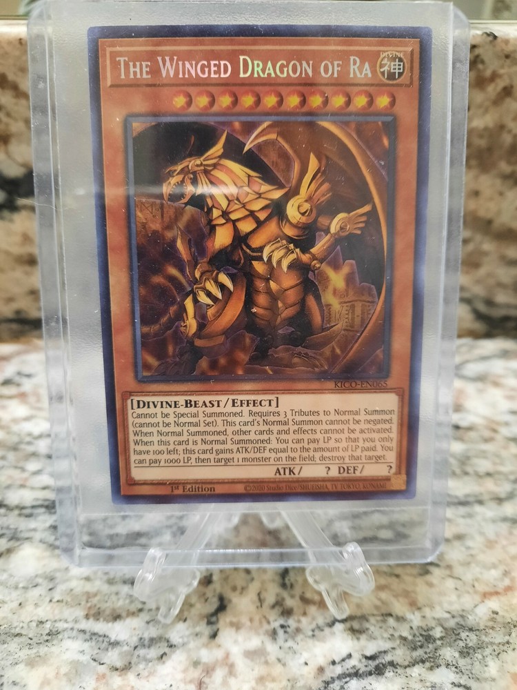 The Winged Dragon of Ra Secret Pharaoh's Rare Mint condition. Fresh pull Taken straight from the pack. Card No. KICO-EN065 * This is the highest quality Ra card we currently have in stock. Check out our store for more Ra cards! Our Guarantee On Every Card! All Cards Are In Hand & Shipped From Rockland County, NY. All Cards Are 100% Authentic. Fast Shipping! Protected & Safe Shipping. Shipping Via Bubble Mailer on all cards over $20. Reliable Product Descriptions And Pictures Of The Actual Card You Will Receive . Safe & Secure Payment. Joe's New York Authentics * Your Trusted Source For 100% Authentic Sports Cards, Collectibles, And Memorabilia! Thank You Again For Your Business! ~ Joe