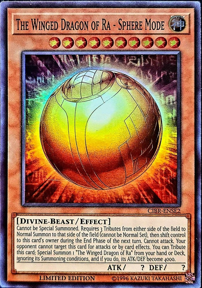 Bluefires Stuff daniel8769-2008 has 99.1% Positive Feedback Welcome! At my store, you will find collectibles and refurbished tech. From recycled memory chips and processors to a variety of storage drives and rebuilt desktops and laptops. I try to keep a variety of products available for everyone. From a single Yu-Gi-Oh! card to a full themed structure The Winged Dragon of Ra - Sphere Mode CIBR-ENSE2. Condition is "New". Shipped with USPS. Item Description Buyers Note: Near Mint ! A great card for any collector or player. This card is in Near Mint or better. Card Name: The Winged Dragon of Ra - Sphere Mode CIBR-ENSE2 - 1st Edition Set: CIBR - Circuit Break Quantity: 1 Edition: 1st Rarity: Super Rare Condition: NM Payment Information & Terms of Sale Credit Cards: We accept Visa, MasterCard, American Express, and Discover Card through PayPal. Payments are due within 3 days of purchase date! Sorry, no exceptions! Orders are shipped within 24 hours of payment. Orders placed & paid after 12noon PST on Fridays, weekends (Saturdays & Sundays), and Holidays are shipped the following business day. Cards are shipped First Class Mail in a hard plastic top loader and Bubble Envelope w/Delivery Confirmation. Continental USA & select countries (Canada, Europe, Australia) I ship Worldwide! Condition Guide: I do not sell any cards that are in MINT condition, the best condition that we offer is near mint. Near Mint (NM) - Cards in Near Mint condition show minimal to no wear from shuffling, play or handling and can have a nearly unmarked surface, crisp corners and unblemished edges outside of a few minimal flaws. A Near Mint card may have a tiny edge nick or a tiny scratch or two, but overall look nearly un-played with no major defects or flaws. Lightly Played (LP) - Cards in Lightly Played condition may have minor border or corner wear or even just slight scuffs or scratches. There are no major defects such as water damage, bends or issues with the structural integrity of the card. Noticeable imperfections are okay, but none should be too severe or at too high a volume. Moderately Played (MP) - Cards in Moderately Played condition exhibit condition issues visible at a casual glance. Cards in Moderately Played condition can have border wear, corner wear, scratching or scuffing, creases or whitening, minor dirt buildup or any combination of mild examples of these marks. A Moderately Played card may have some form of a more major marking, such as spot water damage or creasing that doesnʼt affect card integrity, but not in combination with other issues such as scratches, scuffs or border/edge wear and not impacting a large area of the card. Heavily Played (HP) - Cards in Heavily Played condition show a severe amount of wear. Heavily Played condition can include cards that have major creasing, major whitening, major border wear or any combination of those flaws. (These flaws cannot prevent the card from being tournament playable when sleeved.) Damaged - Cards in Damaged condition can exhibit a tear, bend or crease that may make the card illegal for tournament play, even in a sleeve. Cards in Damaged condition may have extreme border wear, extreme corner wear, heavy scratching or scuffing, folds, creases or tears or other damages that impacts the structural integrity of the card.