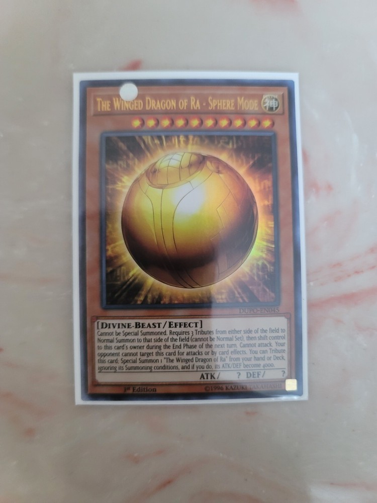 The Winged Dragon of Ra - Sphere Mode - DUPO-EN045 - Ultra Rare - 1st Edition Near Mint Yugioh Card. Ready to go! All items purchased from me are packaged with care. Card singles purchased will be sent in a bubble mailer. For other collectibles items check out my other listings. Thank you.