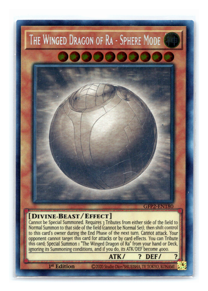 The Winged Dragon of Ra - Sphere Mode - GFP2-EN180 - Ghost Rare - 1st Edition Yugioh Mint Condition Terms and Conditions • Sorry no international buyers • PAYPAL ONLY. Paypal Accepts credit card. • If you have any questions or quieries, just shoot me a message We are not responsible for any lost items during transit. Buyers automatically quality for free tracking when order is over $40. For combined shipping to save on shipping cost, PLEASE commit to the purchase of those items via then select the promotion postage option. AMAZING VALUE ! ROCK BOTTOM PRICE ! 100% AUTHENTIC Buyers automatically quality for free tracking when order is over $40 Items are usually sent securely double sleeved and with thin cardboard paddings if required. Otherwise , You may also add a top loader to your purchase ! Toploader: https://www.ebay.com.au/itm/352812399479 Shipping fee is $1 for the item but it will be deducted when you check out using combined shipping !