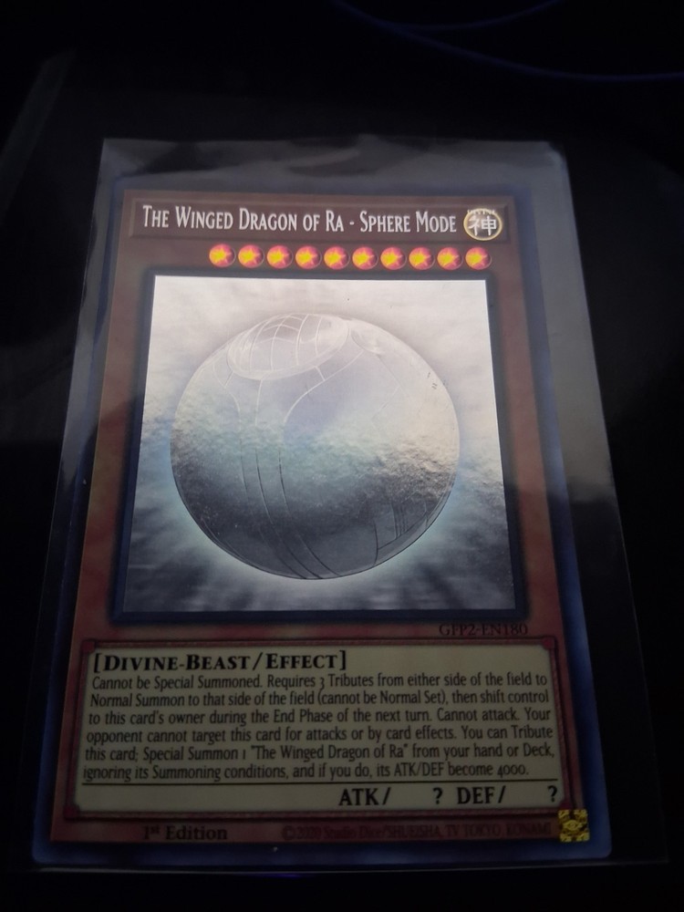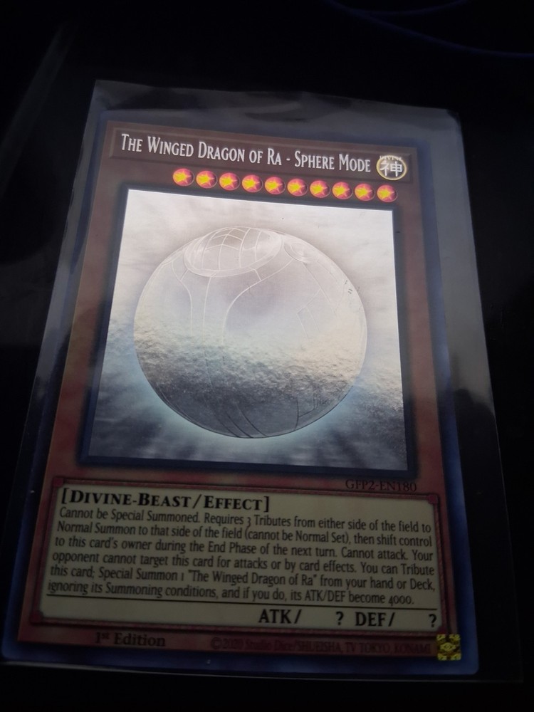 This Ghost Rare Winged Dragon of Ra - Sphere Mode is absolutely stunning! The holographic effect is mesmerizing, and the card arrived in perfect mint condition. The seller was quick to ship, and the packaging was secure. A must-have for any serious collector—worth every penny! Highly recommend if you're in the US and looking for a flawless addition to your deck.