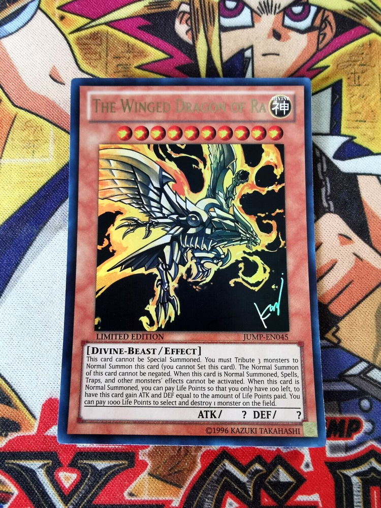 Home New Arrivals Feedback Contact The Winged Dragon of Ra jump-en045 Item Description Good day Sir/Madam! The card(s) you are viewing now will be in LP condition Message me on Instagram (@TheCollector1462) for better deals on all cards/slabs ^^ CHECK OUT MY GRADING SYSTEM BELOW ^_^ All conditions stated in my listings are my opinion of the card, which may differ from somebody else. When I say 'Mint condition', I believe it is grade worthy, please message me first if that is what you are after and I will double check any card for you so nobody is disappointed :) MINT (M) = No damages....MINTY FRESH! (BUT MESSAGE ME if you need me to check if it is grade worthy) NEAR MINT (NM) = Close to mint with only very slight wear/imperfection(s) VERY LIGHT PLAY (VLP) = Very slight wear but not quite NM. LIGHT PLAY (LP) = Visible wear on the card but nothing major. MODERATE PLAY (MP) = Obvious wear like notable edge/corner silvering/whitening, maybe the odd light indentation. HEAVILY PLAYED (HP) = Still playable but in pretty bad shape overall & likely to have creases/notable indentations. + = Higher end of that condition grade e.g. 'NM+' is almost Mint. Always message me if unsure of condition :P The first picture (of both front and back) will be the card(s) you will receive!!! Any extra pictures are to show you the other cards for sale (in order). Please have a look at my other swag as upload old and new cards most days! :) Message me if i can help with anything at all! ***I WILL BUY YOUR YU-GI-OH CARDS !!!*** See Other Items Shipping Always very well packaged!! I try to post all items as soon as possible :) Message me if you have any specific requirements for postage! Payment I am PayPal verified and only accept PayPal :) Thank you!! Returns I will accept any returns for items not as described :) I will also accept returns on items where you have simply changed your mind....however i would have to request that you pay any postage and fees :) Thanks for looking Thank You for your purchase Copyright All Rights Reserved - Template Created by ZTproject