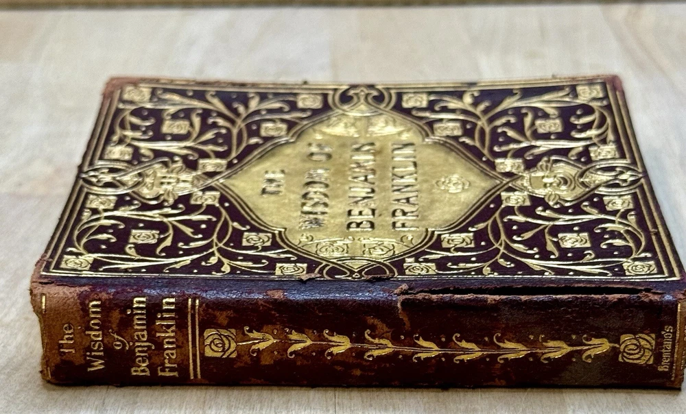 This is a rare find for any book collector or history enthusiast. The book is a leather-bound edition of "The Wisdom of Benjamin Franklin" by Brentano's, published in 1911. The author, Benjamin Franklin, is a legendary figure in American history. The book is written in English and covers a range of topics related to biography and autobiography. It is a must-have for anyone interested in historical figures and their wisdom. The binding is intact and shows some signs of wear, which is expected given its age. This book is a valuable addition to any collection and a great gift for anyone interested in history. *** USPS Ground shipping is 3-6 WEEKS on average from ALASKA. Packages are sent by boat from Anchorage to Seattle then trucked to where you are. Priority is 3-7 days. If you want to receive your items quickly, select the Priority Rate option when paying.