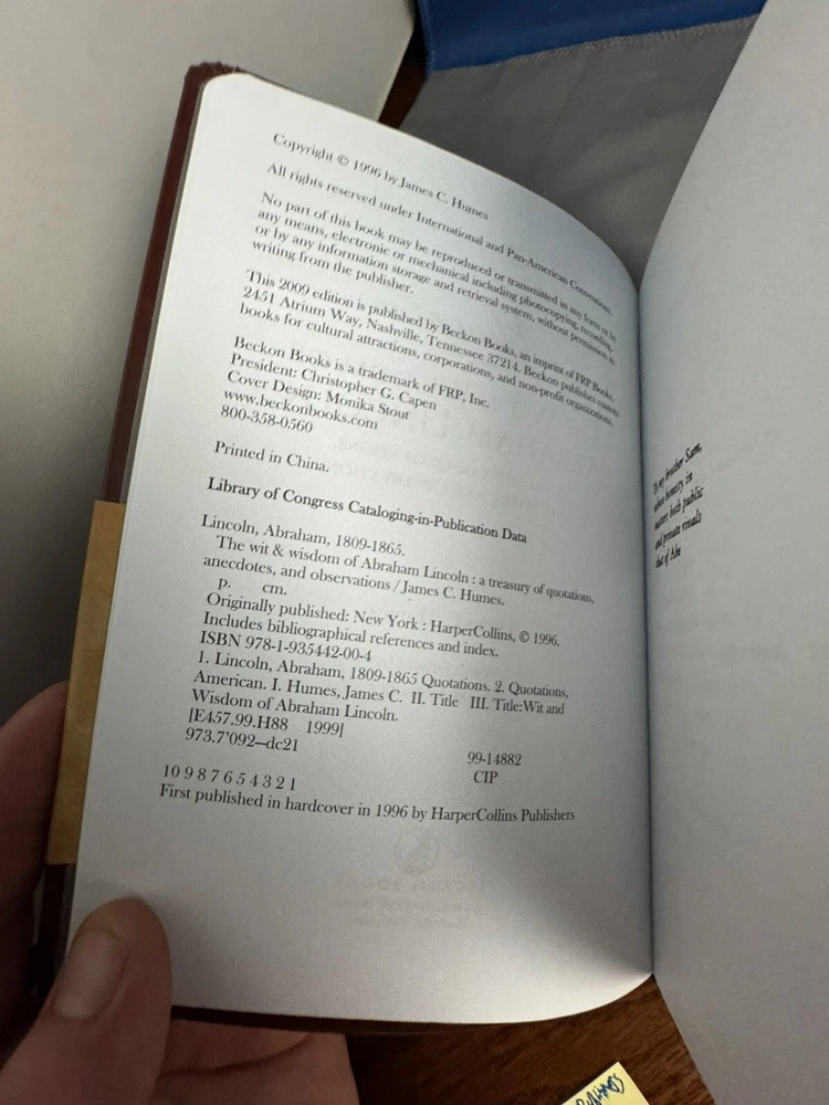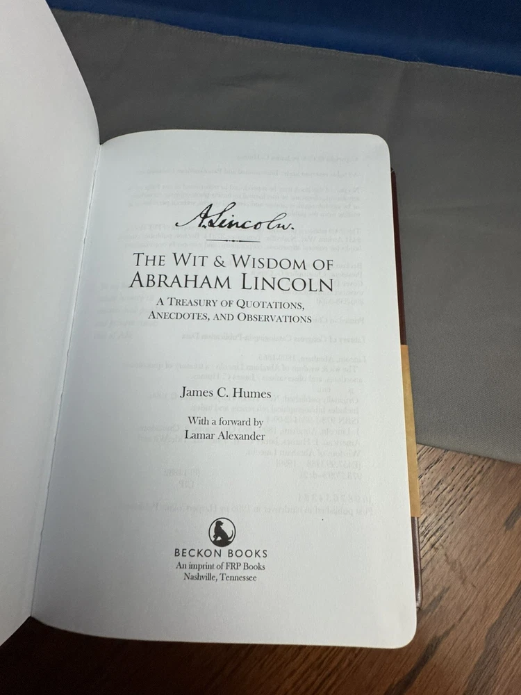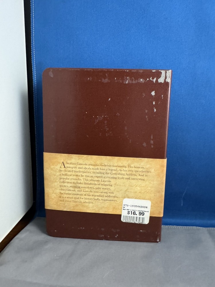 SELLER'S DESCRIPTION Item is in Good+ condition with significant wear and tear on the back cover The rest of the book remains in excellent condition. Please see photos for reference. AI SYNOPSIS This book is a must-have for any collector or enthusiast of Abraham Lincoln's life and career. The Wit & Wisdom of Abraham Lincoln, written by James Humes and published in 2009 by HarperCollins Publishers LLC, is a valuable addition to any library. The book is bound in faux leather and features a dust jacket, making it a beautiful display piece. The book is in its original form. It contains a biography and autobiography of Abraham Lincoln. This historical book is perfect for those interested in the life and career of Abraham Lincoln, and it is a great conversation piece. Location: A3