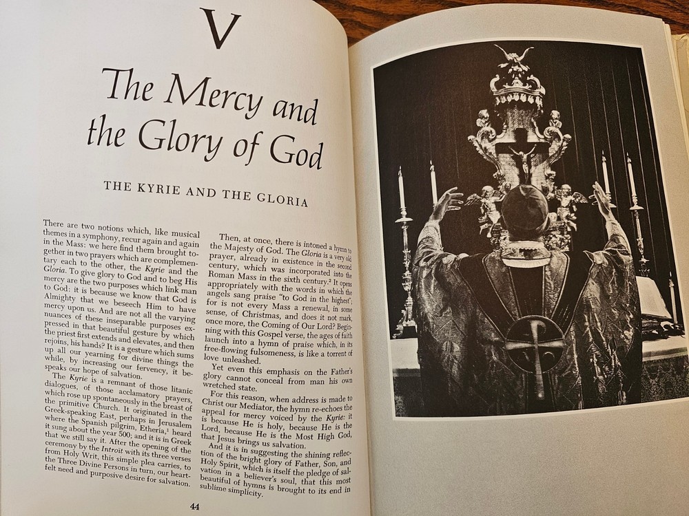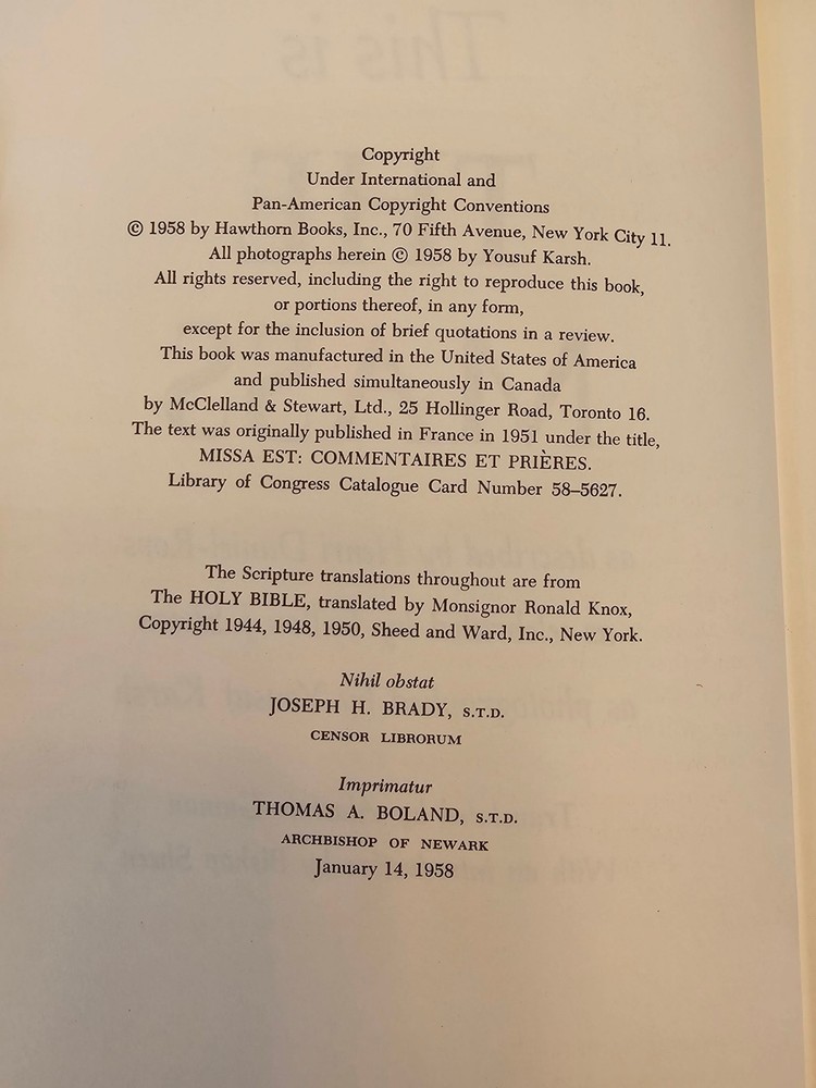This listing is for one vintage 1958 copy of This is the Mass, a look at the mystery and wonder of the Catholic rite of mass. It's bound in a plush white leather with crackling texture, and has gold writing. It has some remnants of a plastic covering and the pages are all in excellent condition with minor wear from age. Photos are part of the description. Items pictured are the only pieces included in the lot. All items come from a smoke-free home. Note that color differences may exist due to differences in monitor settings. All sales are as-is and are final. I no longer accept returns or exchanges for any reason, please review sizes and measurements carefully. Payment is due within 48 hours of sale. Unpaid invoices will be canceled and the item will be returned to inventory to be resold. Items will be shipped to the address provided- please make sure it is your full, correct mailing address (including any apt, lot, or box numbers) prior to purchase. If you have any questions please don't hesitate to reach out to us! We strive to use recycled shipping materials as often as possible to minimize our carbon footprint! Your order may arrive in a recycled box or envelope and be packed with recycled packing materials. Please note I am currently able to ship one day per week. Winter weather may cause delays in shipping.