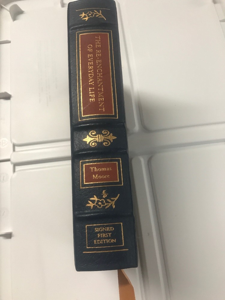 Thomas Moore THE RE-ENCHANTMENT OF EVERYDAY LIFE Signed Easton Press 1st Edition. Shipped with USPS Media Mail. Thomas Moore THE RE-ENCHANTMENT OF EVERYDAY LIFE Signed Easton Press 1st Edition 1st Printing Norwalk, Connecticut 1996 Easton Press Fine, Leather Bound. Signed by Moore. Book accented in 22kt gold. Printed on archival paper with gilded edges. The endsheets are of moire fabric with a silk ribbon page marker. Smyth sewing and concealed muslin joints to ensure the highest quality binding. This book is in full leather with hubbed spines. Number 538 of 3,000. Signed like new Limited Edition Starting from the premise that we can no longer afford to live in a disenchanted world, Moore shows that a profound, enchanted engagement with life is not a childish thing to be put away with adulthood, but a necessity for one's personal and collective survival. ... Google Books 9.5” x 6”. 396 pages Purchased with 50 other first edition signed books Keep in mind the shipping price also covers handling fees, packaging materials & time, not just postage. See our eBay store for 1000’s of other items. B12