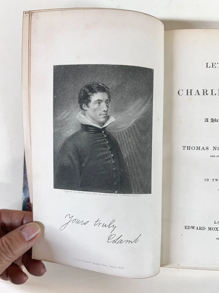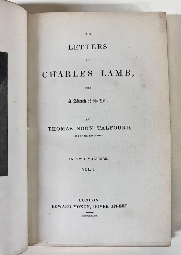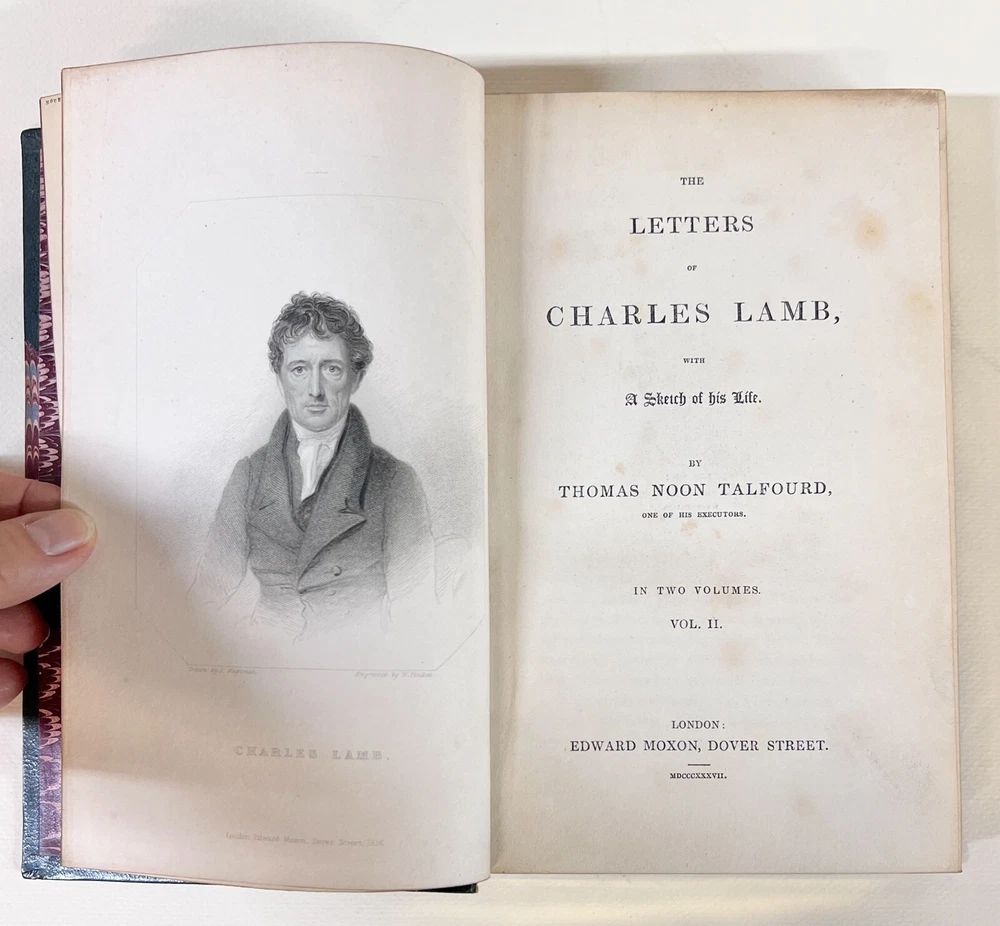Description : Thomas Noon Talfourd, The Letters of Charles Lamb with a Sketch of his Life. In two volumes. Half green morocco on marbled boards, gilt titles on spine, raised bands, marbled end papers, all gilt edges. Illustrated frontis. Bound by L Broga. Published Edward Moxon London 1837. Approx. Measurements: 5.25 x 7.875 x 2 inches Condition: Very good condition, rubbed, bumped corners, edgewear. pencil notations. Scattered pen notations. PHB1708 sch We have a fine selection of quality items for sale at Amphora Art & Antiques. International as well as domestic customers are welcome - please contact us with questions regarding shipping or listings, and we will assist you quickly. All items can be inspected in-person or are available for pickup from our large Wilmington, CA warehouse with no additional fee or charge. The authenticity of all items listed are guaranteed to be as represented - all efforts are taken to ensure accurate and descriptive condition reports and photographs. We reserve the right to use another shipping carrier other than what is listed to ensure your purchase arrives safely. Fedex cannot ship to a P.O. Box. Please contact us before or upon purchase if you have a preferred shipping carrier.