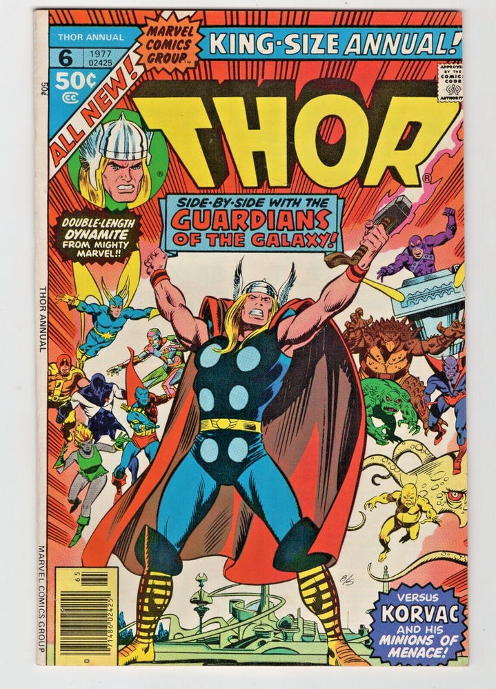Thor King-Size Annual #6 Origin Korvac 1977 Guardians of the Galaxy Book is graded VF (dirty spine on back cover) Please enlarge pictures to see details of book you will receive.