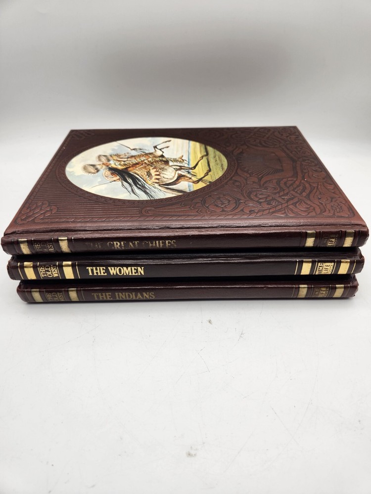 Time Life Books Old West 3 Hardback books 1974 Leather Bound The Women, Great Chiefs, The Indians. Items in overall nice condition with a few small signs of age. Nothing major that I noticed. See pictures for details. Message with questions. Immediate payment required! Books shipped with Media Mail which is the cheapest. ***Returns only accepted up to 30 days after buyer receives item. Please contact us immediately (WITHIN 5 DAYS AFTER RECEIVING ITEM) if any issues with order. We will be happy to assist you within the allowed time period. New, sealed, tagged, unused items must be returned in the same condition. Buyer pays return shipping. ● Buyers with less than 3 feedback comments MUST contact us before buying. A signature may be required for delivery. We do not sell internationally so if you do not live in the US unfortunately we cannot sell to you at this time. Movies, Books and Music can be sent via media mail. If an item does not qualify for media mail or first class shipping - there will be 3 other shipping options available at checkout. Older books may have some signs of odor from storage. Economy shipping such as USPS Parcel Select does not come with insurance so if you choose this option and your item(s) are damaged in shipping - they may not be covered. You can opt to purchase the insurance for an extra $3.00. Just let us know via message on Ebay before you pay.