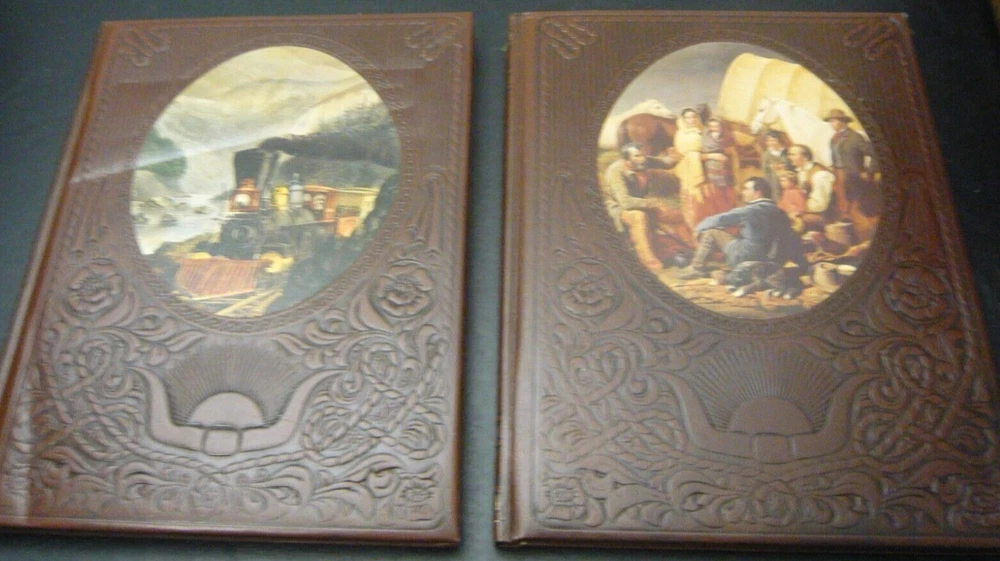 This is a set of 21 of 26 total volumes of Old West Time Life series. They have been stored in a SoCal bedroom since they were purchased. Not sure why the series is not complete, but this is all the volumes I could find. Some of "gold" embossing is wearing off or oxidizing. All pages are very crisp, and I doubt they were read. This set had been stored stacked upon one another for years and some of the flexible leather binding has impressions from the books stacked on top, as I have shown in several pictures.