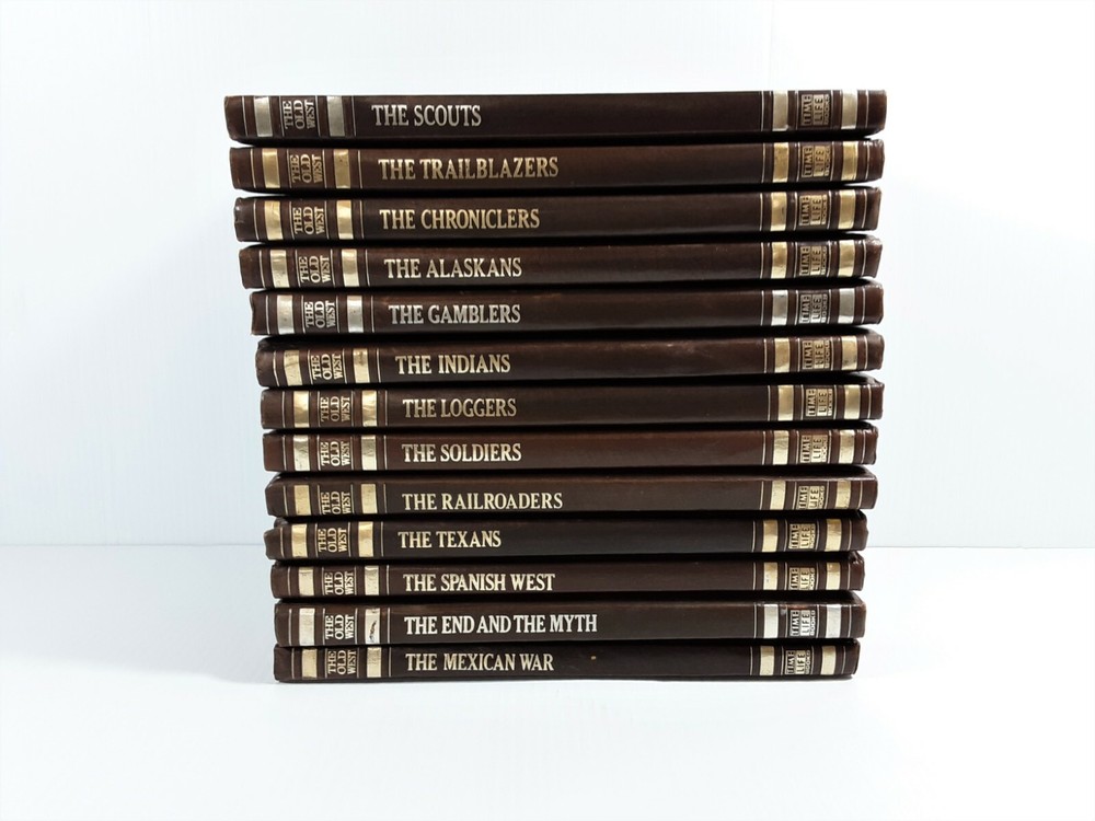 Lot of 13 different titles from the Old West series by Time Life Books. Leatherbound. Includes.... The Trailblazers - good - normal shelf wear. Minor water staining on the upper corner of the pages. The Indians - good - normal shelf wear. The Chroniclers - very good - light shelf wear. Pages are clean and unbent. The Alaskans - very good - normal shelf wear. Pages are clean and unbent. The Gamblers - very good - light shelf wear. Pages are clean and unbent. The Loggers - very good - normal shelf wear. Pages are clean and unbent. The Soldiers - very good - normal shelf wear. Pages are clean and unbent. The Railroaders - good - normal shelf wear. Minor water staining on the upper corner of the pages. The Scouts - very good - light shelf wear. Pages are clean and unbent. The Mexican War - good - normal shelf wear. Minor warping to the cover. The End and the Myth - acceptable - large number of indentations on the cover, water staining on the pages. The Texans - very good - normal shelf wear. The pages are clean and unbent. The Spanish West - like new - very light shelf wear. The pages are clean and unbent. These are used but are in mostly very good condition. They have minor age discoloration and corner wear. But are all readable. Major flaws are noted on individual books. Welcome to ResellRecycleReuse! We specialize in secondhand goods. Our goal is to keep as many useable items out of our landfills as we can. Please assume everything is used unless otherwise stated. New items may have coupons or codes, assume these are expired unless otherwise stated. We do not accept returns, however, if something is damaged or not as described, please contact us and we will work to correct the problem. If for any reason you are dissatisfied, please contact us directly and we will work to solve any problems. Put us on your favorites list.....you never know what you might find!