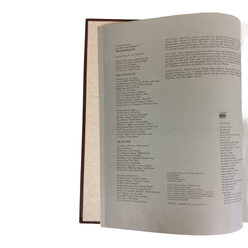 Time Life Books: The Old West Series - The Soldiers - Leatherette hardcover 1974. Book is in very good used condition. I am happy to combine shipping for you on multiple purchases if there is a savings. Please let me know as soon as possible as I tend to ship very fast. Please review my pictures as part of my description. Thanks!