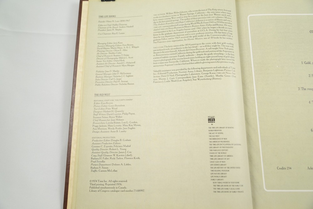 Time Life Books; The Old West- The Forty-Niners Faux Leather Hardcover Book 1974 Third printing. Reprinted 1976 Faux leather bound 240 pages Features illustrations, photos. No stray marks, solid binding. Good condition. Minor embossing fading. Shipping combined for multiple purchases of my listings. Please message me for any questions about my listings. Thank you for viewing.
