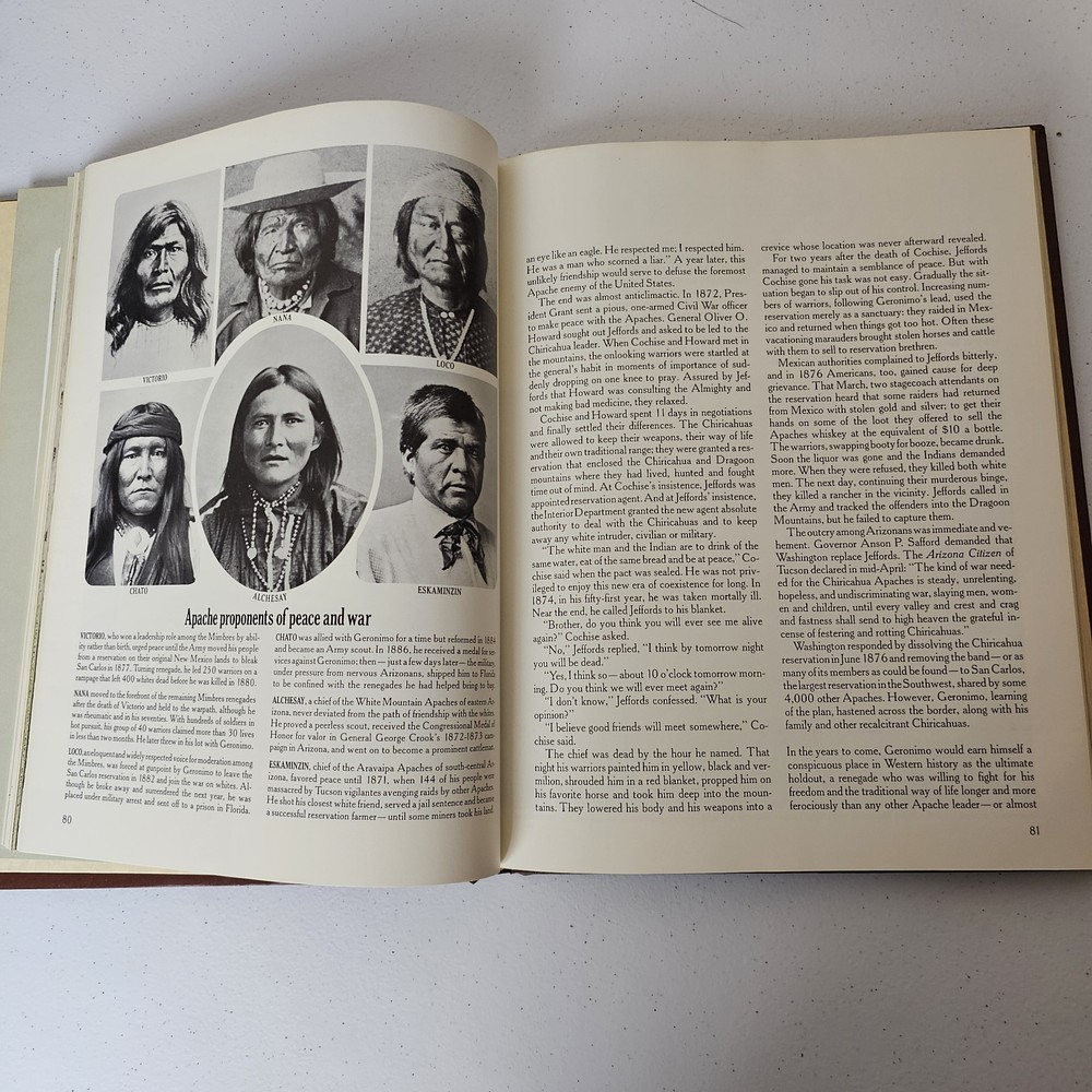 Explore the rugged landscapes and thrilling narratives of the American West with "The Great Chiefs" from The Old West series by Time Life Books. Authored by Benjamin Capps, this hardcover picture book is a treasure trove of historical insight, featuring 240 pages of richly illustrated and engaging content that brings the Western genre to life. Published in 1982, this nonfiction piece is a must-have for enthusiasts of the Western topic, offering a comprehensive look at the iconic period through vivid storytelling and visuals. Crafted with a faux leather bound cover and presented in English, it's a perfect addition for collectors and readers alike who appreciate the intricate details and heritage of the Old West.